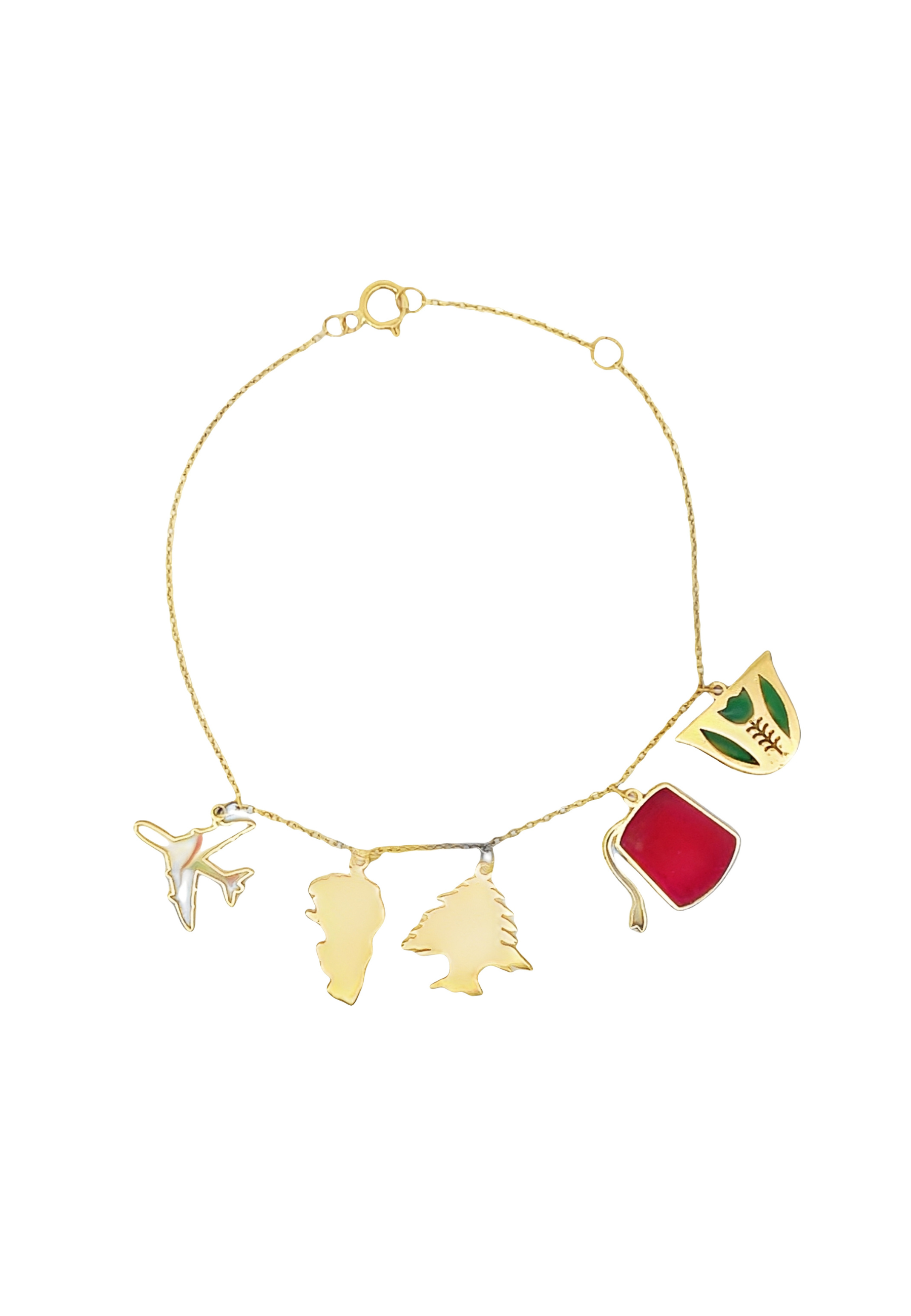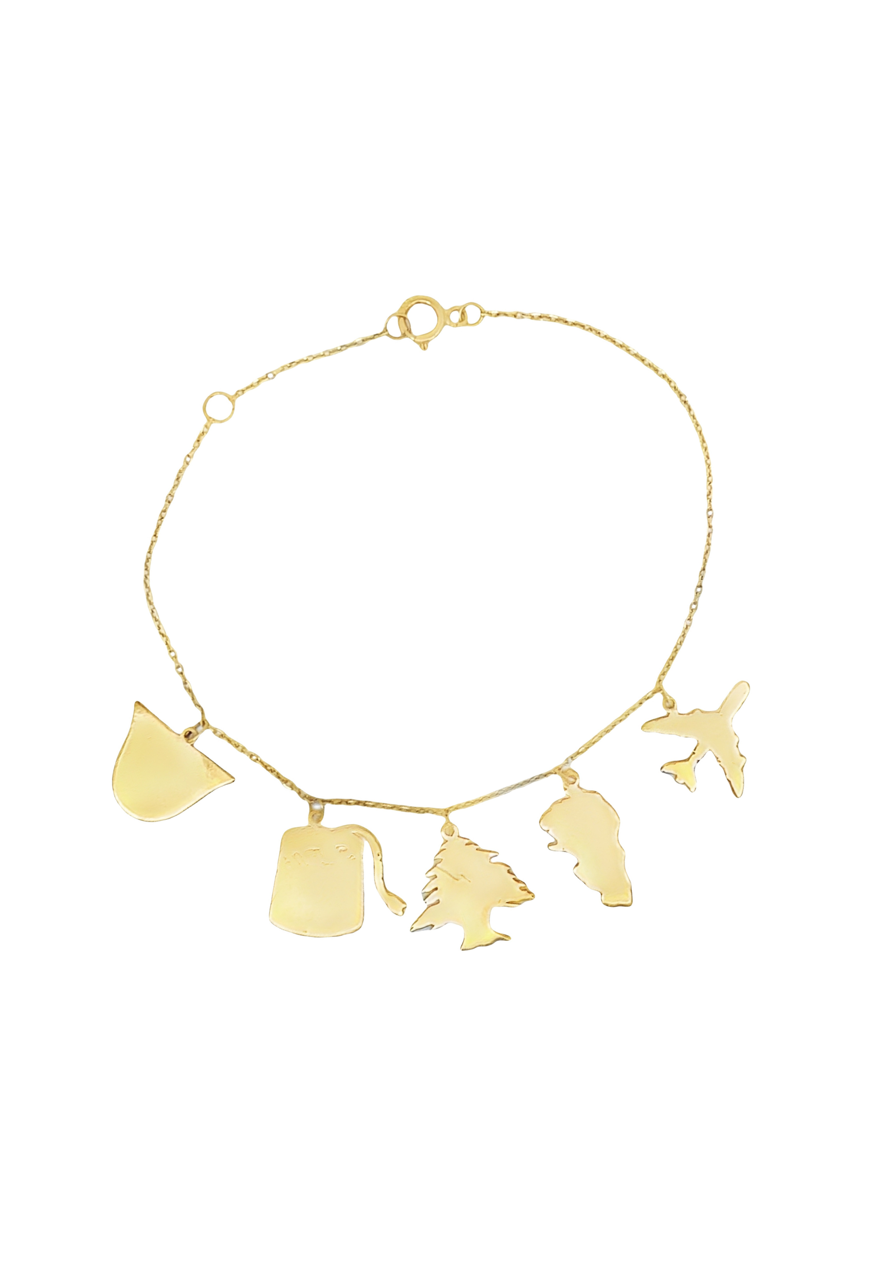 Celebrate your unique style with our 18KT Gold Charm Bracelet, featuring an eclectic mix of charms including an airplane, Christmas tree, map, and more. Each charm is intricately designed to symbolize travel, festive cheer, and adventure, adding a distinctive flair to your look.
