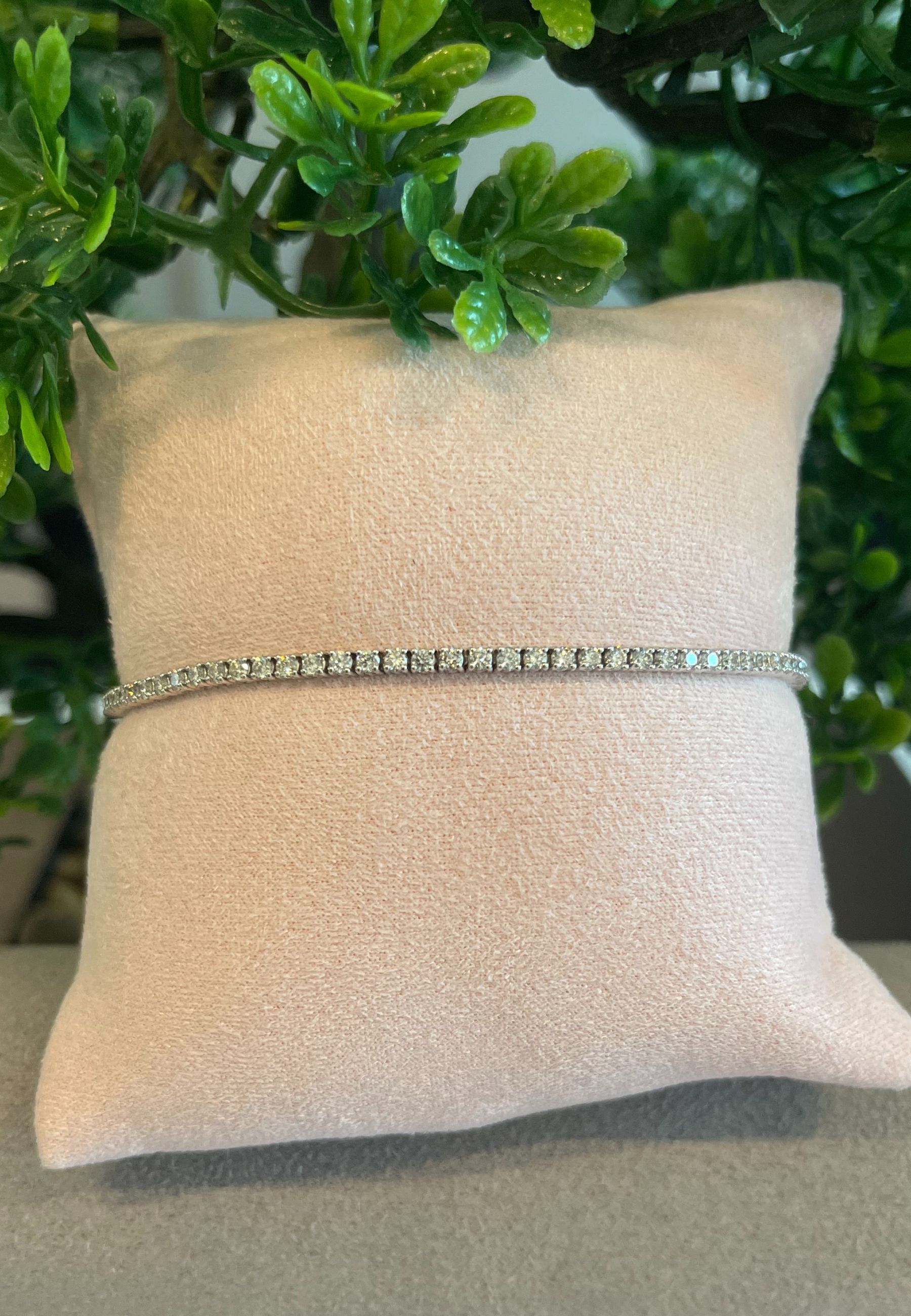 Discover the perfect harmony of craftsmanship and beauty with our meticulously crafted 18KT White Gold Diamond Tennis Bracelet, destined to be a cherished addition to your jewelry collection. Whether worn solo as a statement piece or stacked with other favorites.