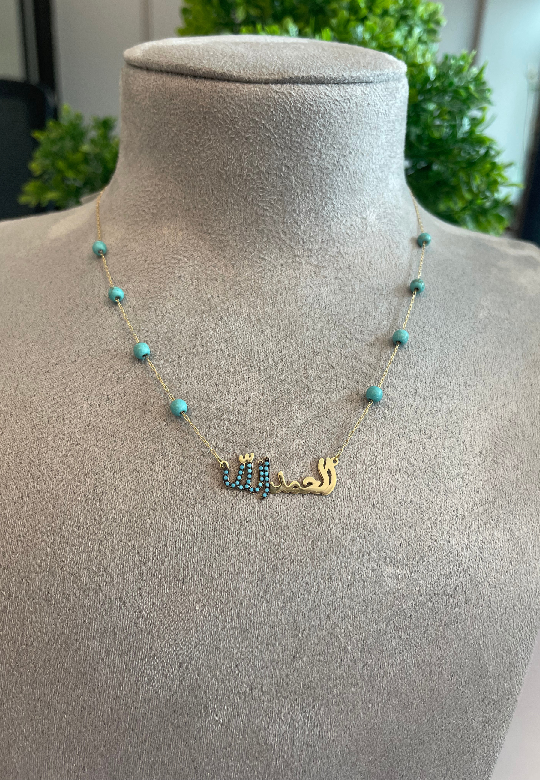 Celebrate your faith with our exquisite 18KT Gold Necklace, featuring "Alhamdulillah" beautifully inscribed in Arabic. The intricate Arabic script adds a touch of cultural richness, making it a meaningful addition to any jewelry collection.
