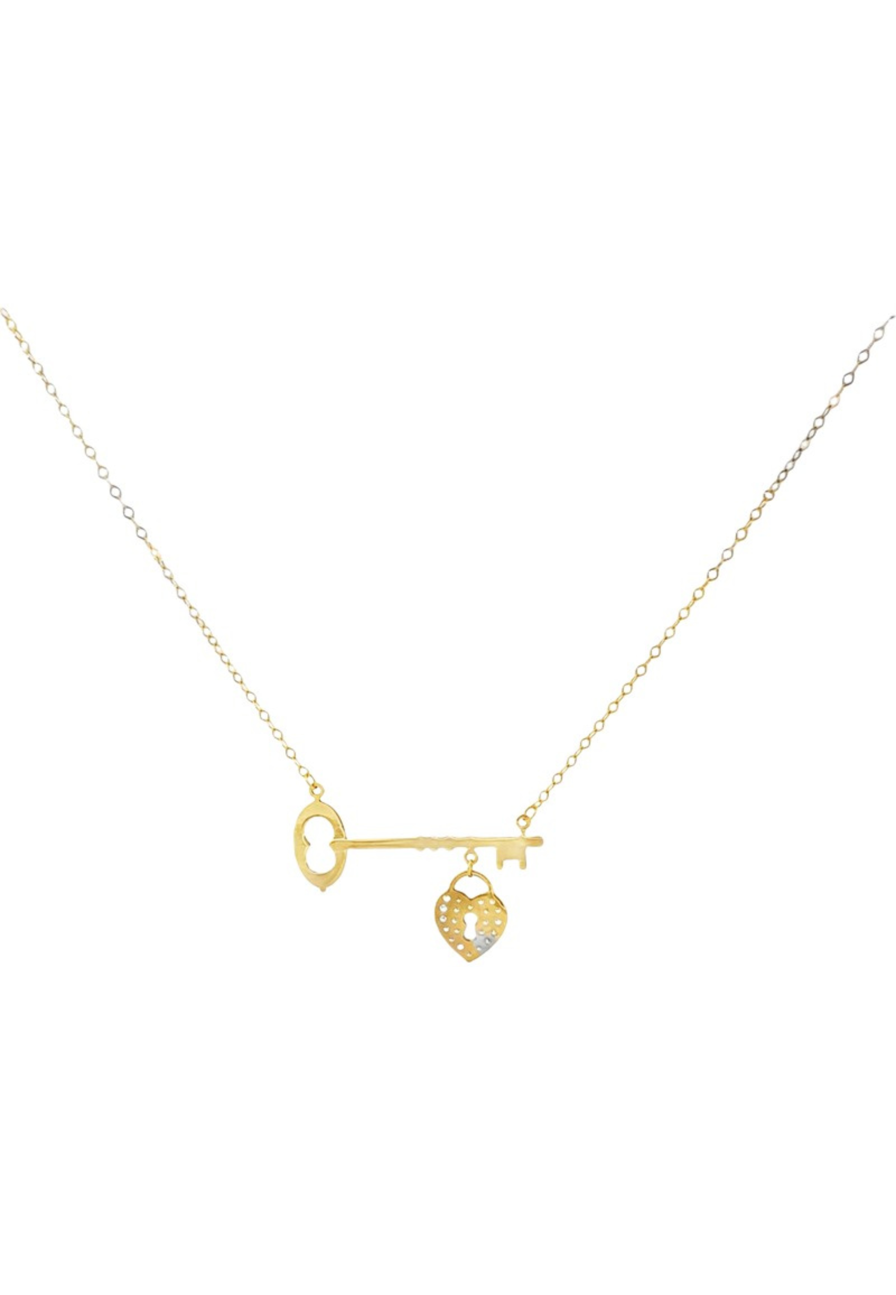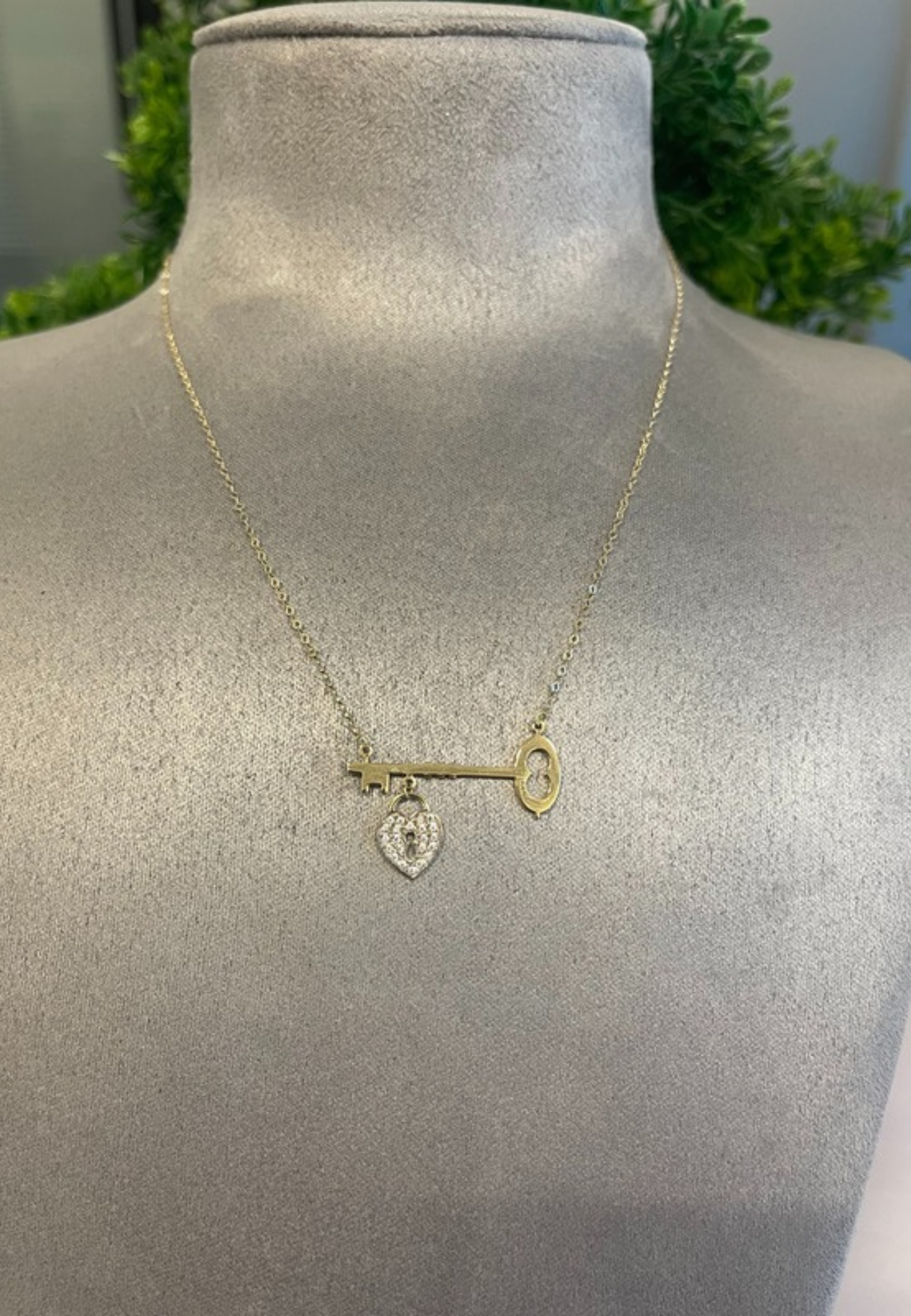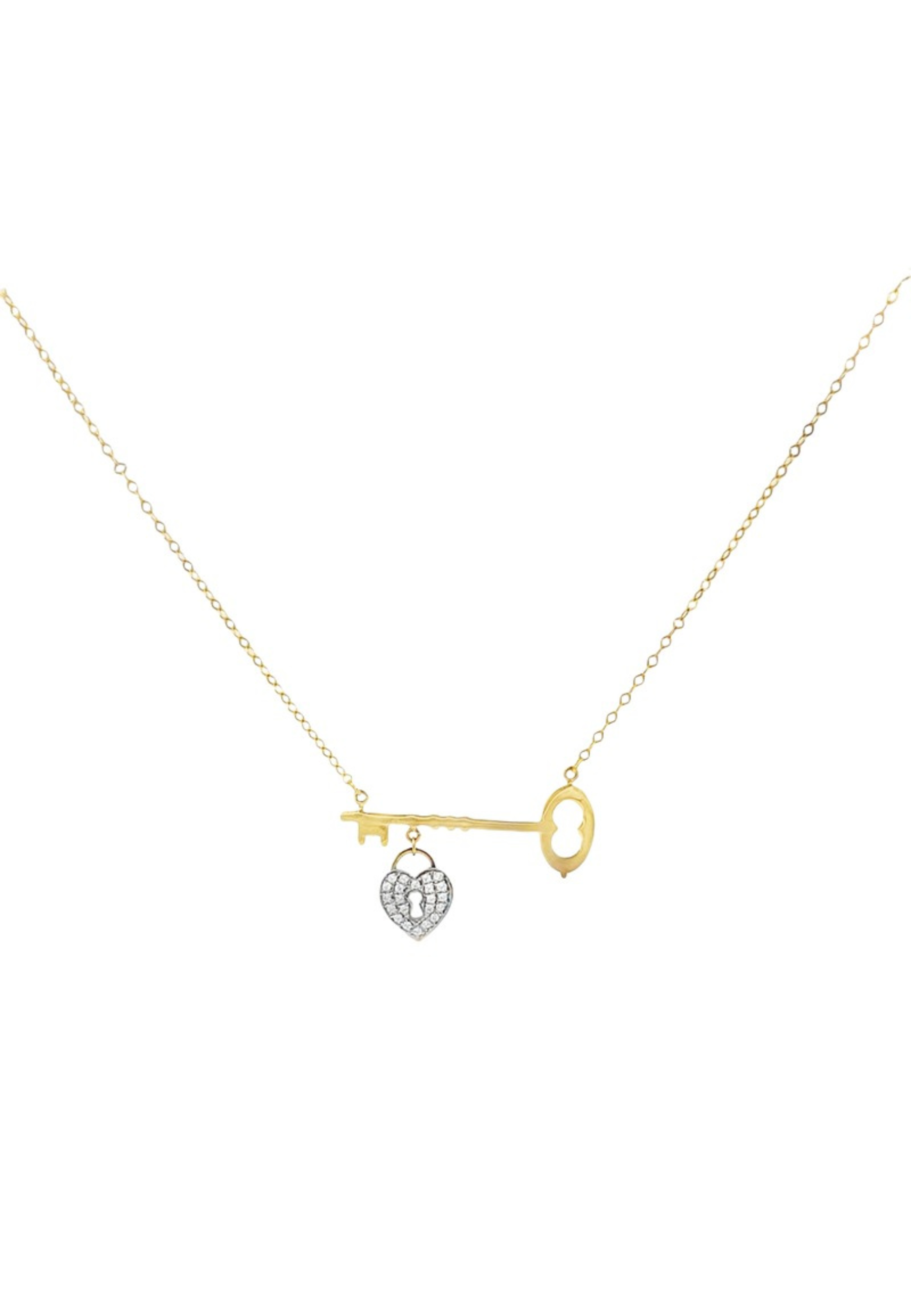 Unlock the essence of love and style with our exquisite 18KT Gold Necklace, featuring a stunning key pendant adorned with a delicate zircon heart. The intricate design combines timeless beauty with modern charm, making it heartfelt statement that lasts a lifetime!