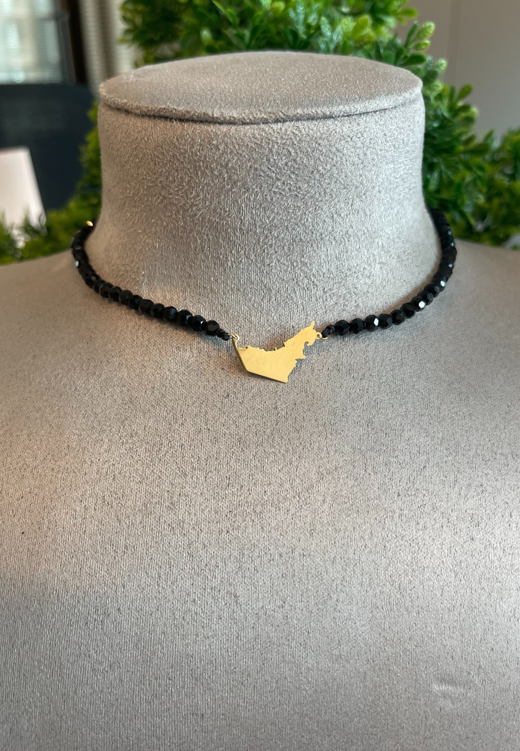 18KT Gold Map Onyx Thread Choker