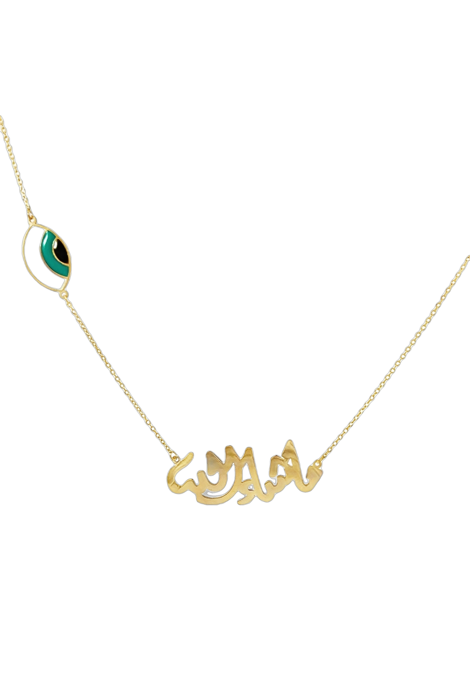 The 18KT Gold Customizable Enamel Eye Necklace features a striking eye design crafted in 18KT Gold with vibrant enamel detailing. Personalized for a unique touch, this elegant piece symbolizes protection and style, making it a meaningful accessory.