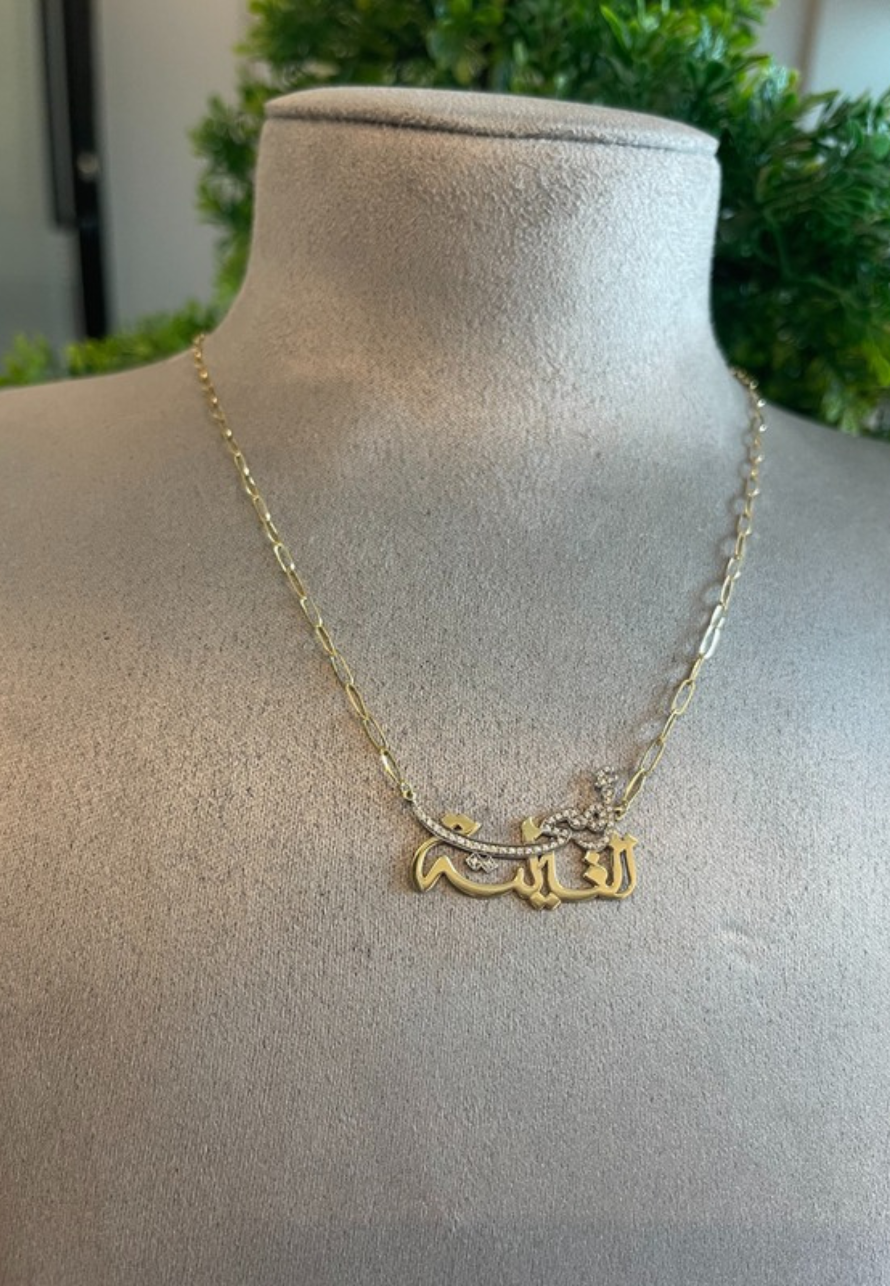 The 18KT Gold Customizable Zircon Names Necklace features elegant zircon-accented name pendants, crafted from luxurious 18KT Gold. This personalized piece combines sophistication with a unique touch, making it a meaningful and stylish accessory.