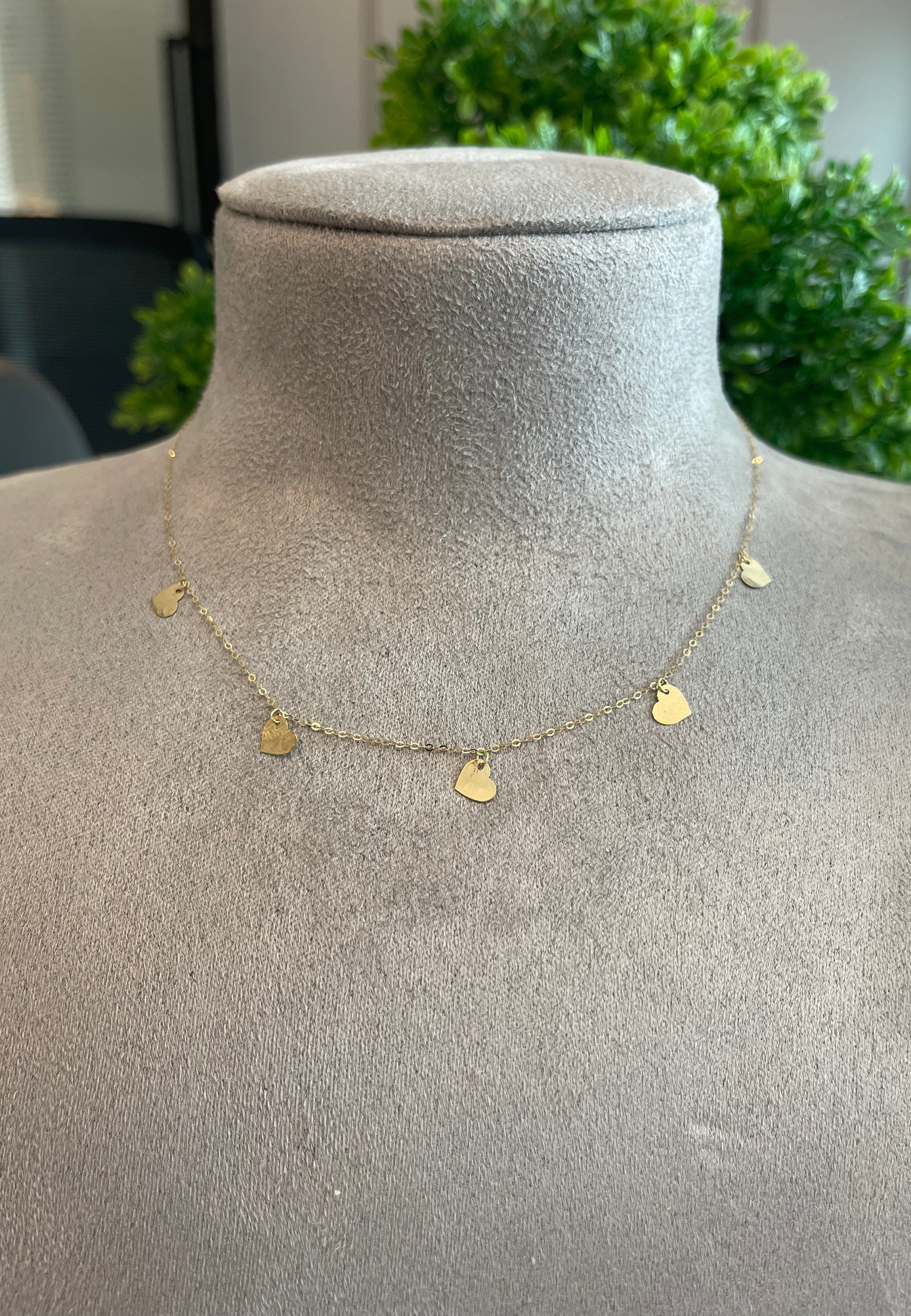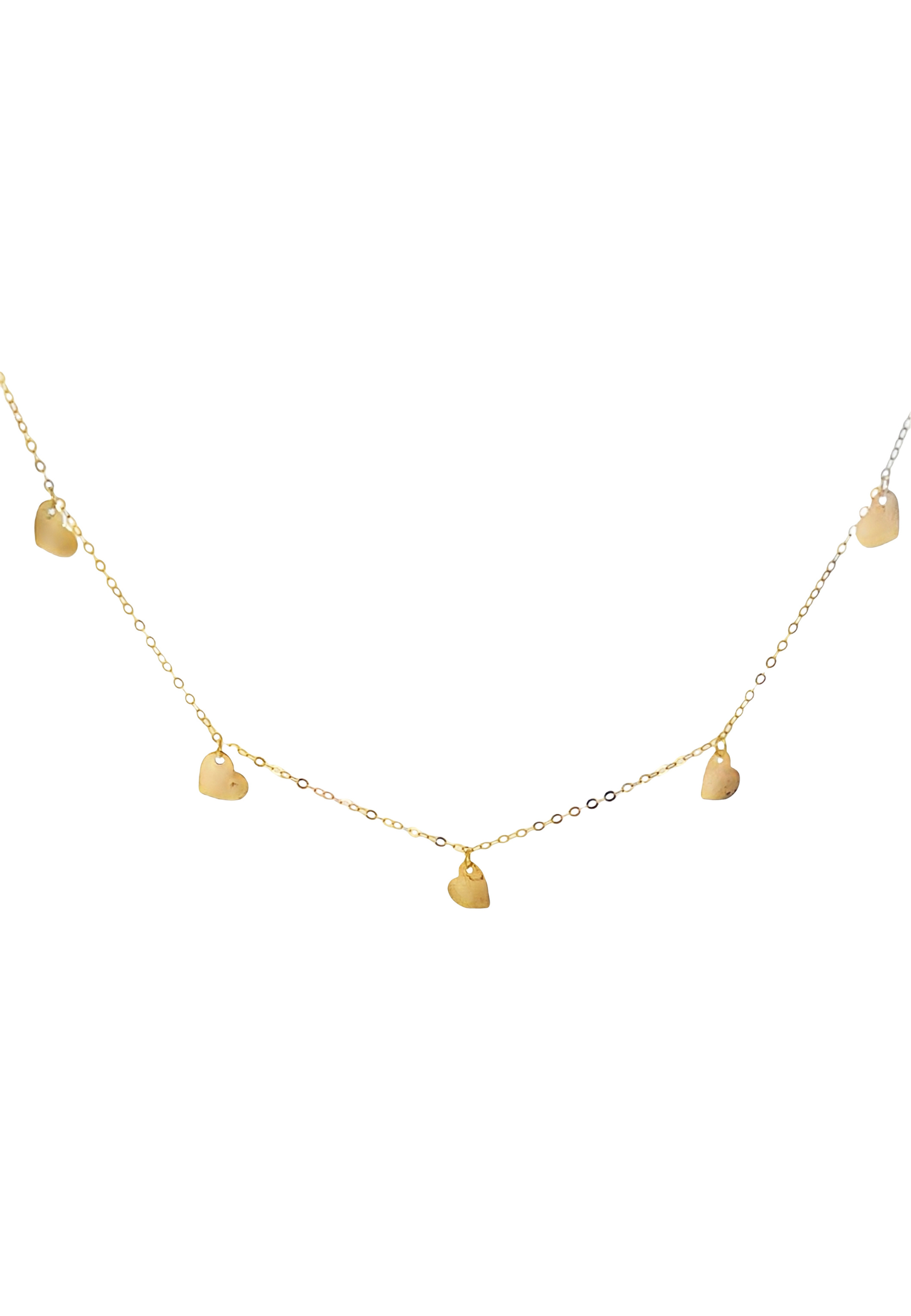 18KT Gold Dangling Hearts and Woman's Face Necklace