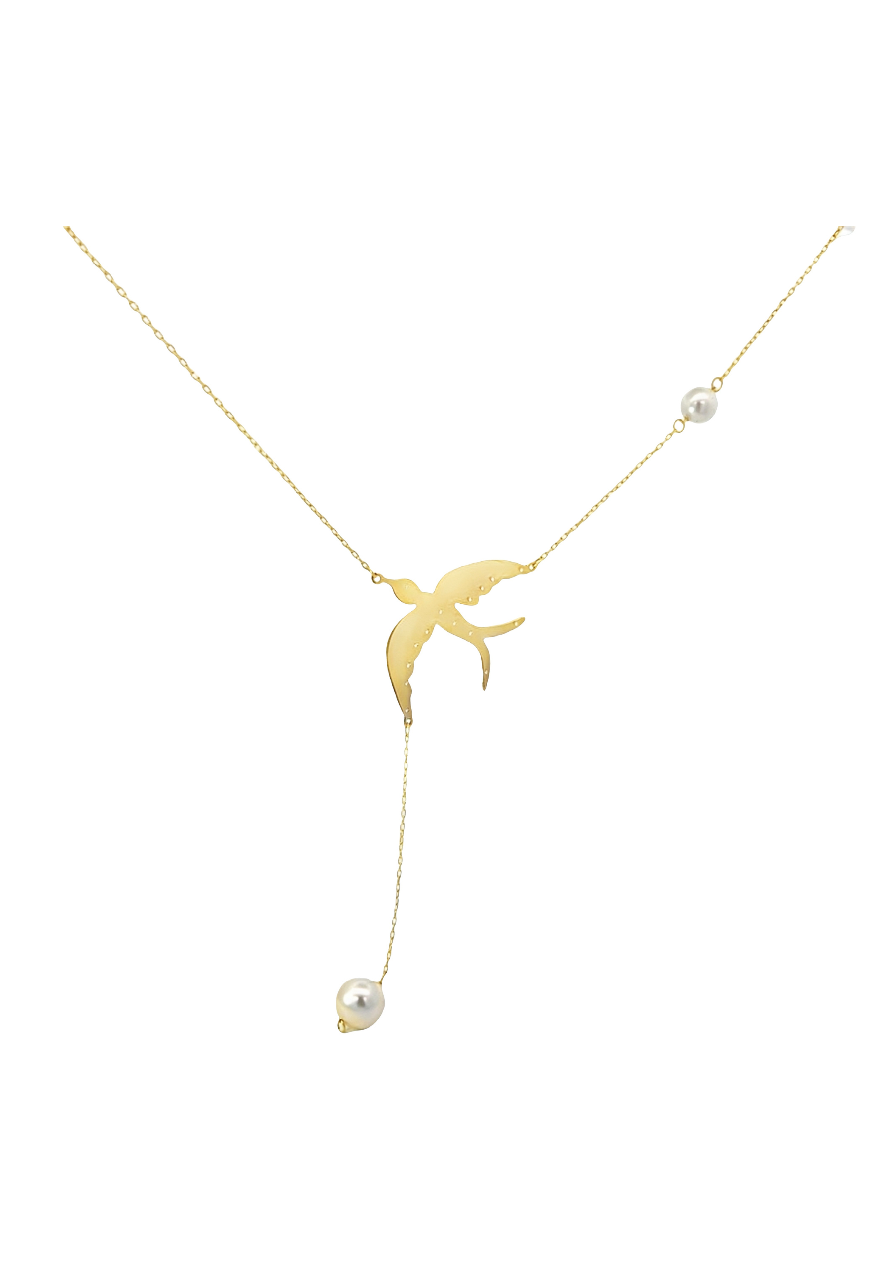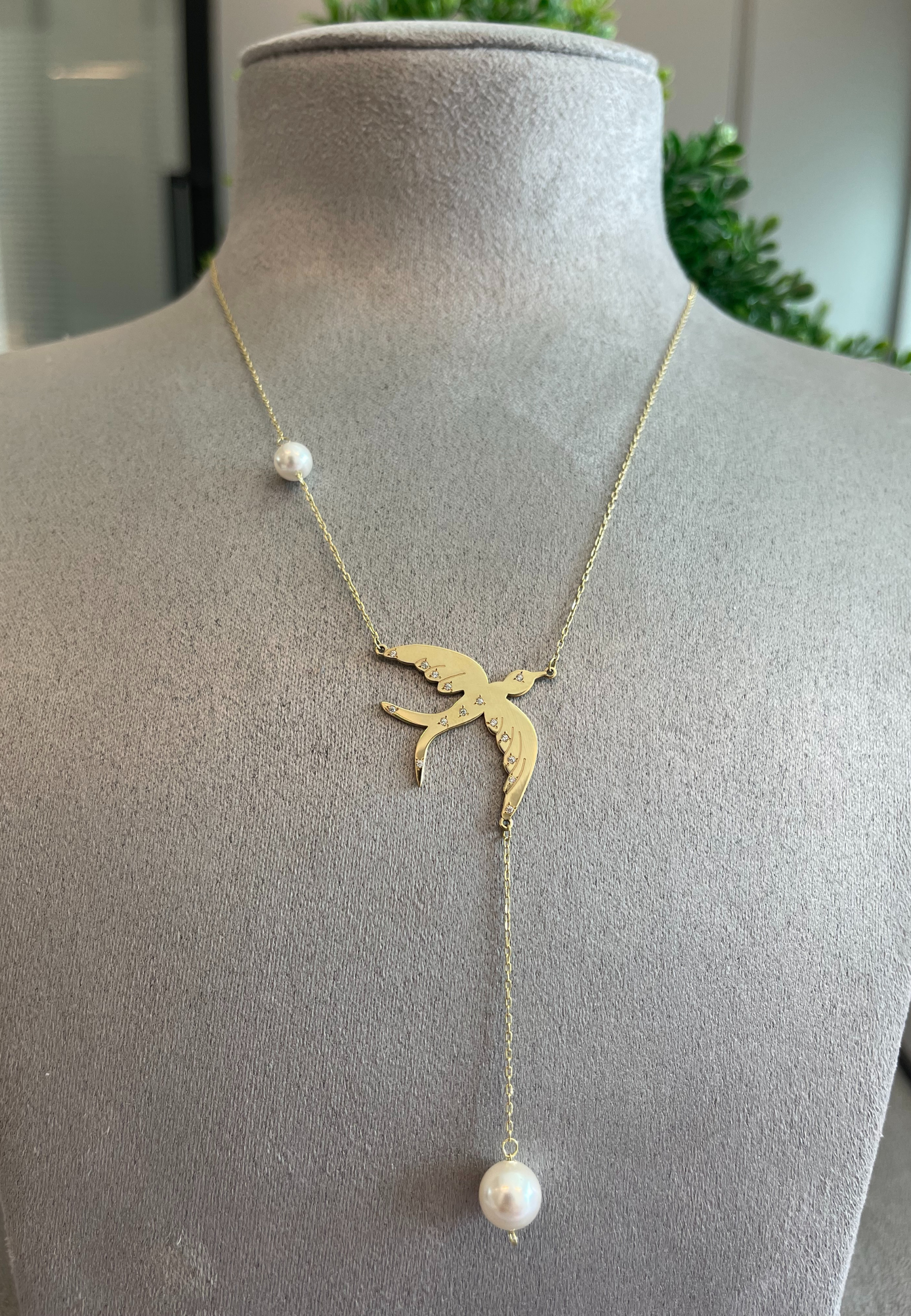 Fall in love with the stunning 18KT Gold Bird Necklace with Zircon and Pearls. This necklace will forever be your favorite accessory. Indeed, this necklace is a must-have for your collection!