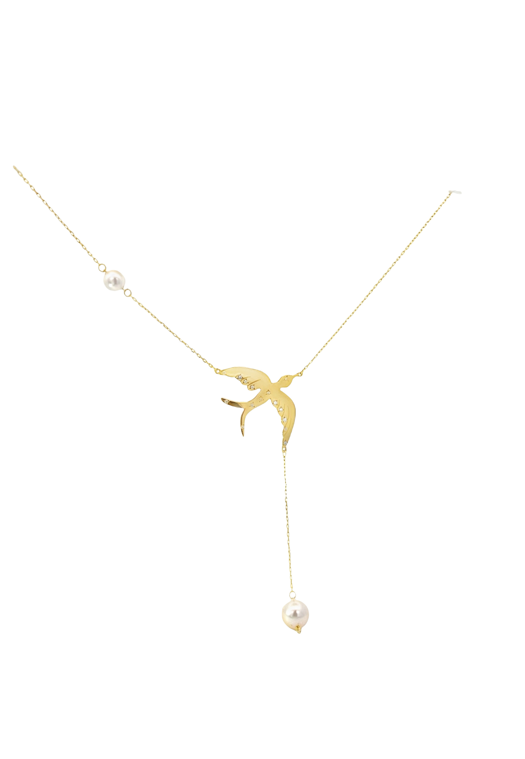 18KT Gold Flying Bird with Pearls and Zircon Necklace