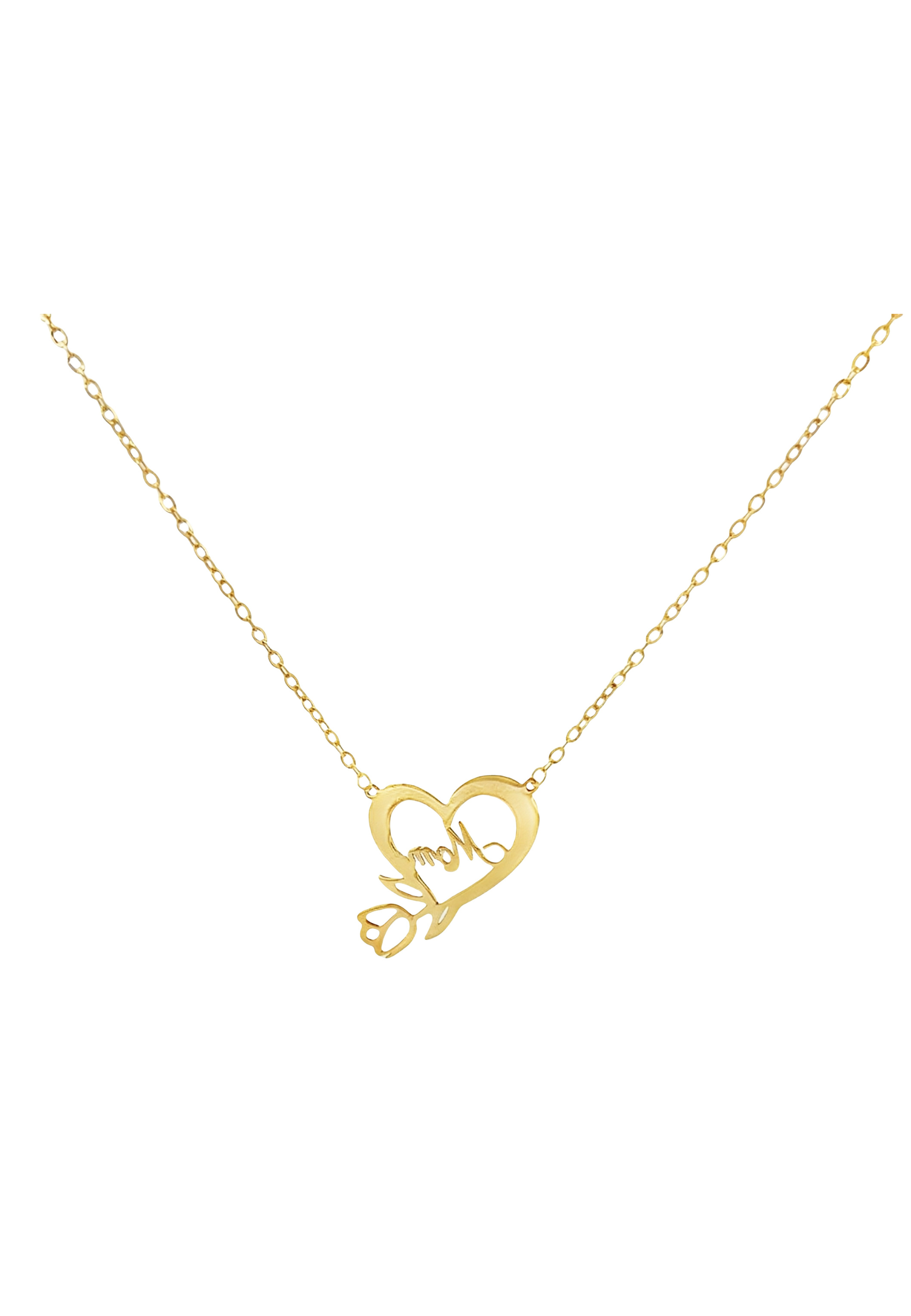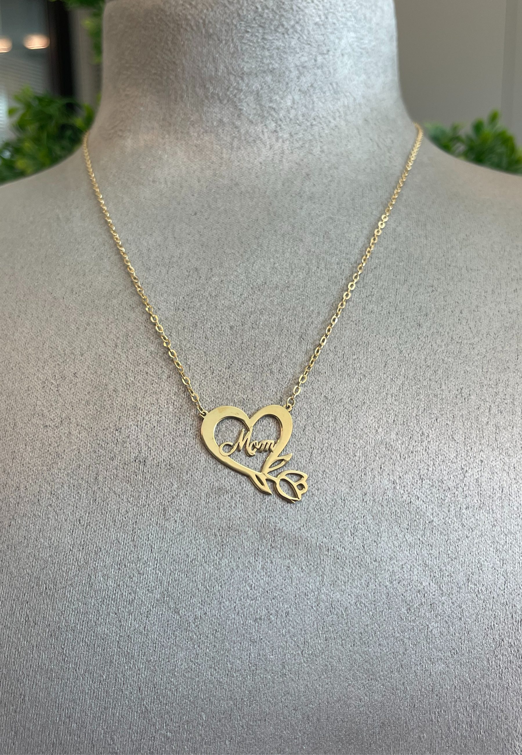 Celebrate the love and beauty of motherhood with our exquisite 18KT Gold Necklace features a heart shaped pendant with "Mom" and a delicate rose detail. Perfect for honoring the special bond with your mother as a thoughtful gift.