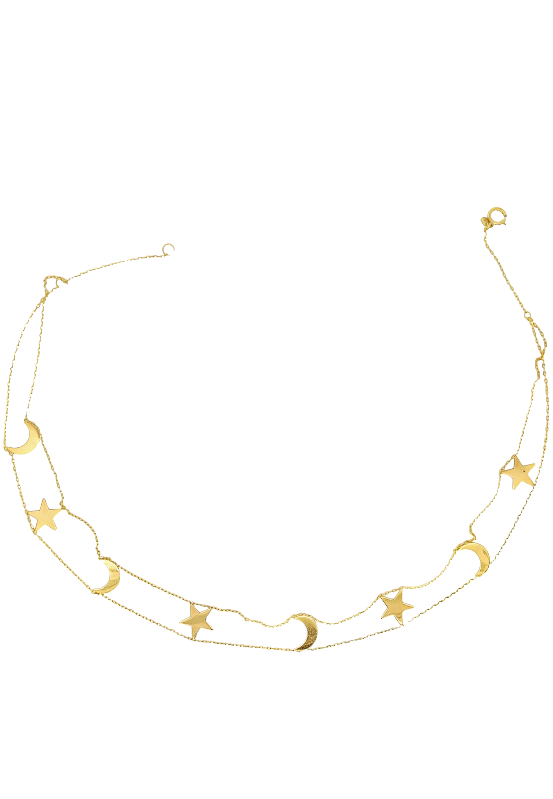 Illuminate your style with our enchanting 18KT Gold Necklace, featuring a stunning alignment of a star and moon in one elegant line. Order yours today to shine bright and embrace your inner star!