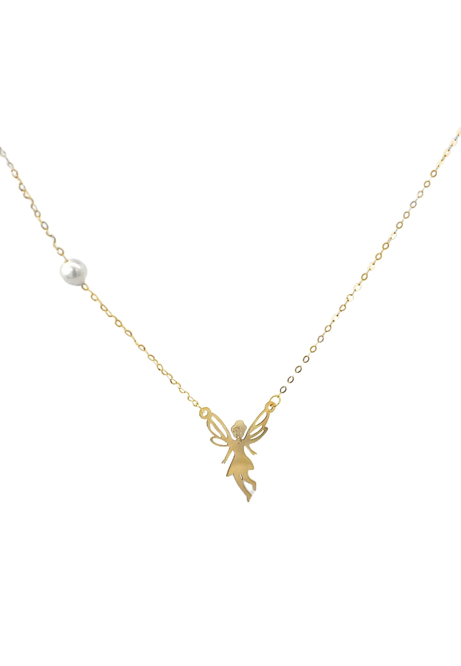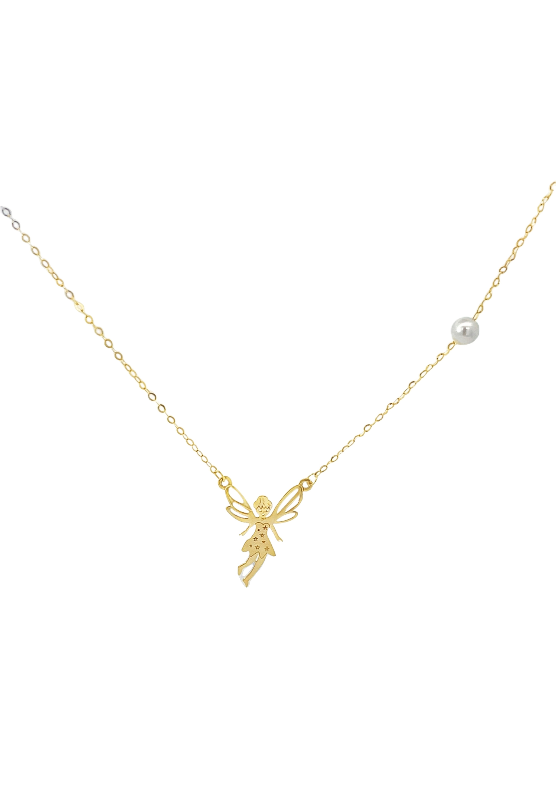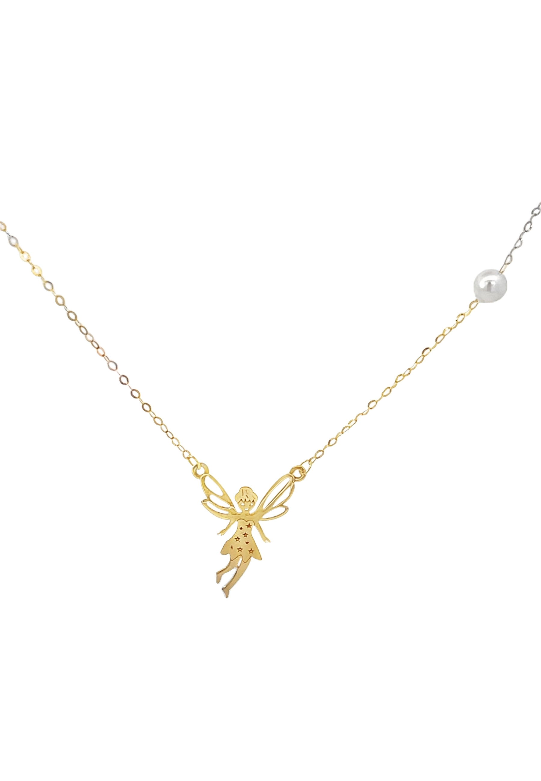 The 18KT Gold Tinkerbell Necklace features a whimsical Tinkerbell charm delicately crafted in 18KT Gold. This enchanting piece captures the magic of imagination and adds a playful yet elegant touch to any look.