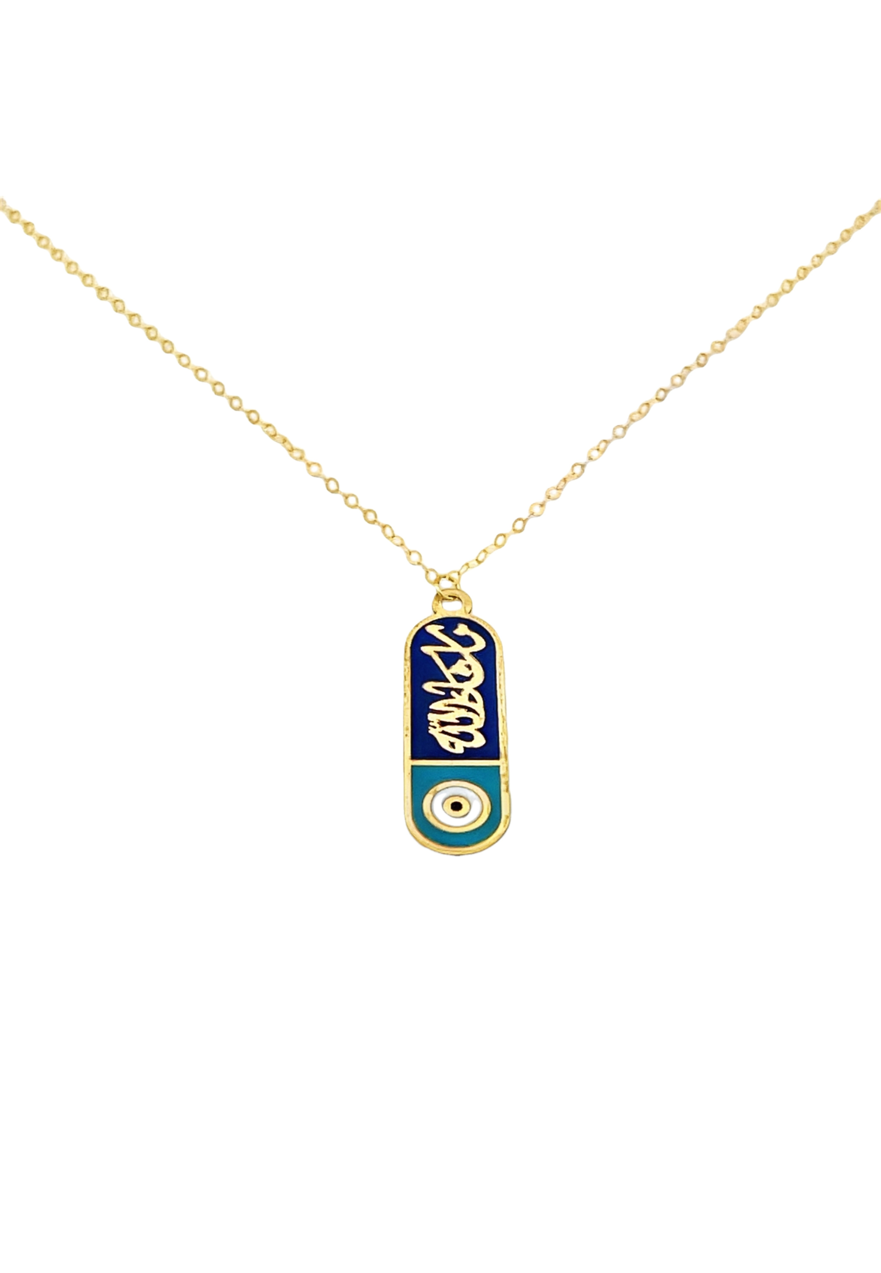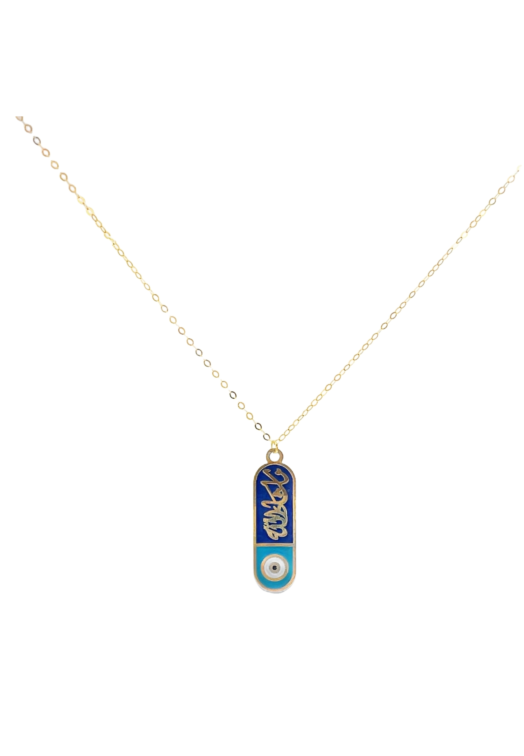 18KT Gold Necklace with Vertical Enamel Charm