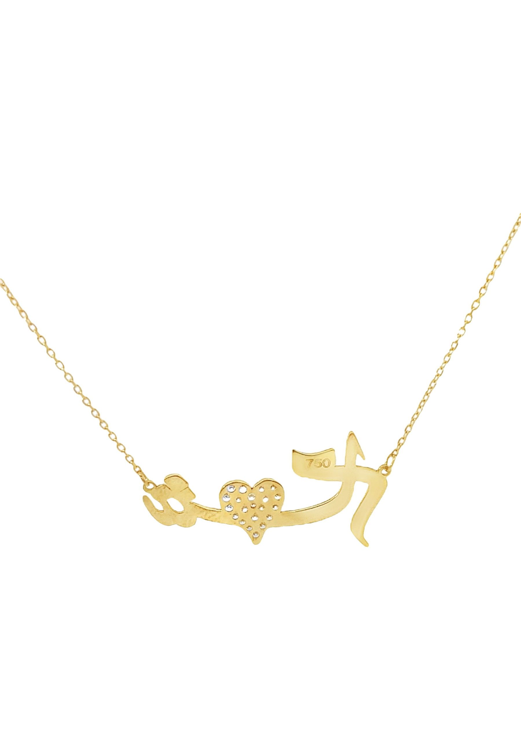 The 18KT Gold Sham Heart Necklace with Zircon features a beautifully crafted heart-shaped pendant adorned with sparkling zircon stones, all set in luxurious 18KT gold. This elegant piece symbolizes love and elegance, making it a timeless accessory.