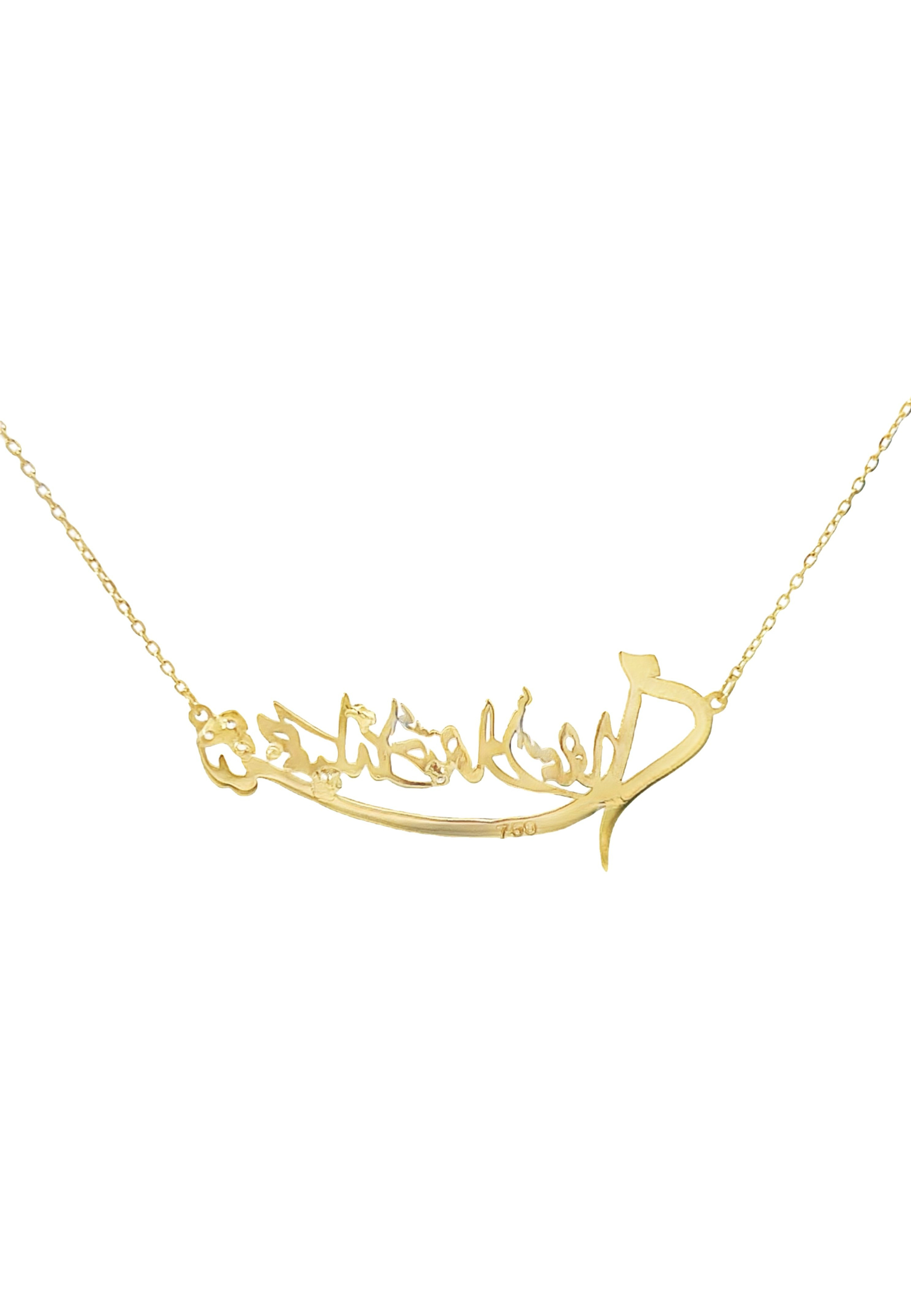 An 18KT Gold Sham Necklace with Zircon is a luxurious piece of jewelry featuring a stunning design crafted from 18KT Gold. The necklace is accented with sparkling zircon stones, adding brilliance and elegance. The "Sham" design may incorporate cultural or geometric motifs, making it a sophisticated and eye-catching accessory suitable for both everyday wear and special occasions.