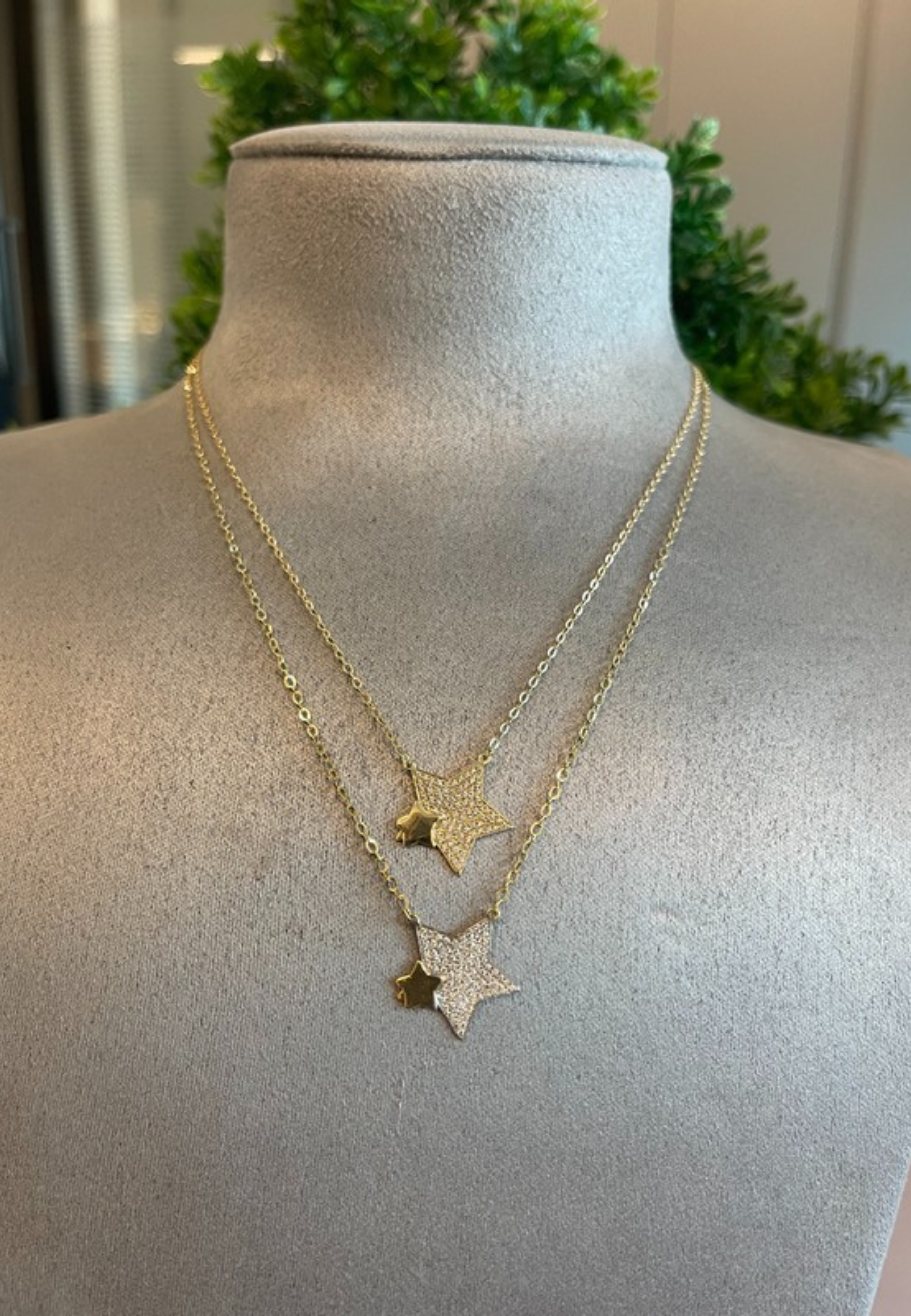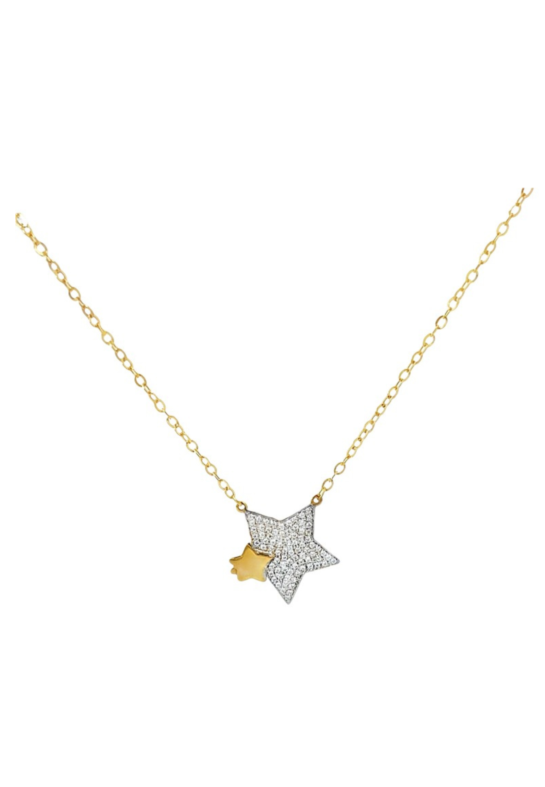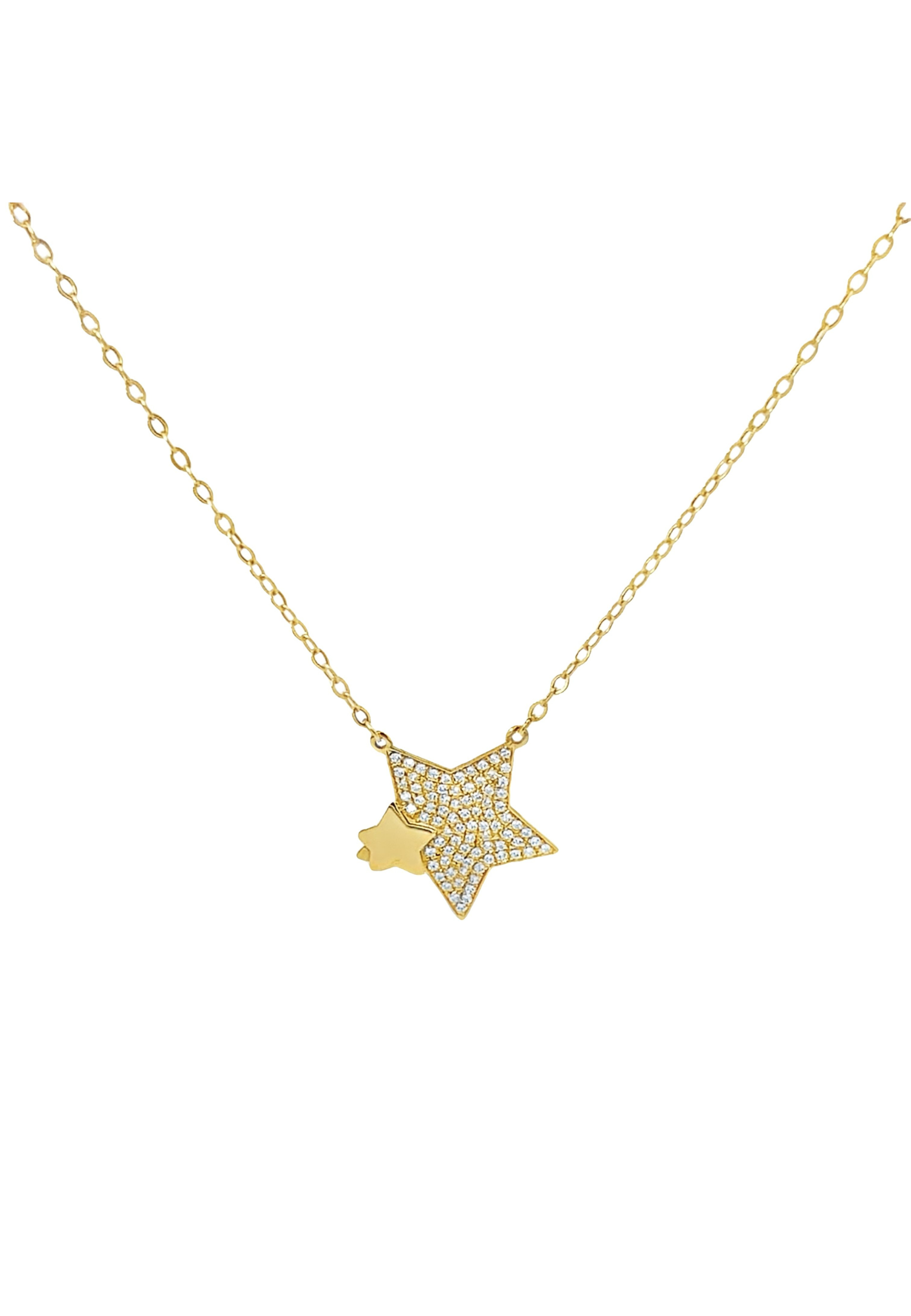 The 18KT Gold Star Necklace with Zircon showcases a stunning star-shaped pendant accented with sparkling zircon stones, crafted from luxurious 18KT Gold. This elegant piece adds a celestial charm to any outfit.
