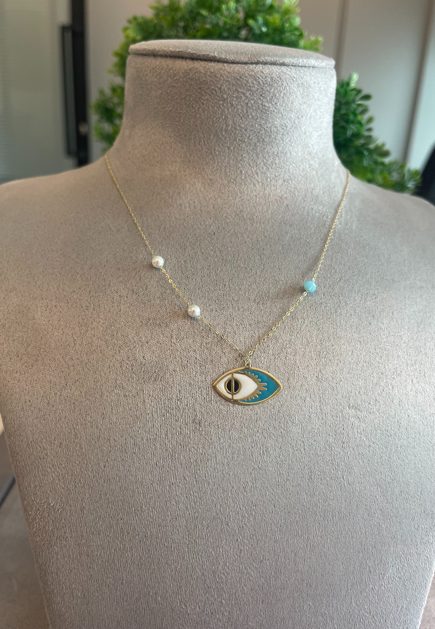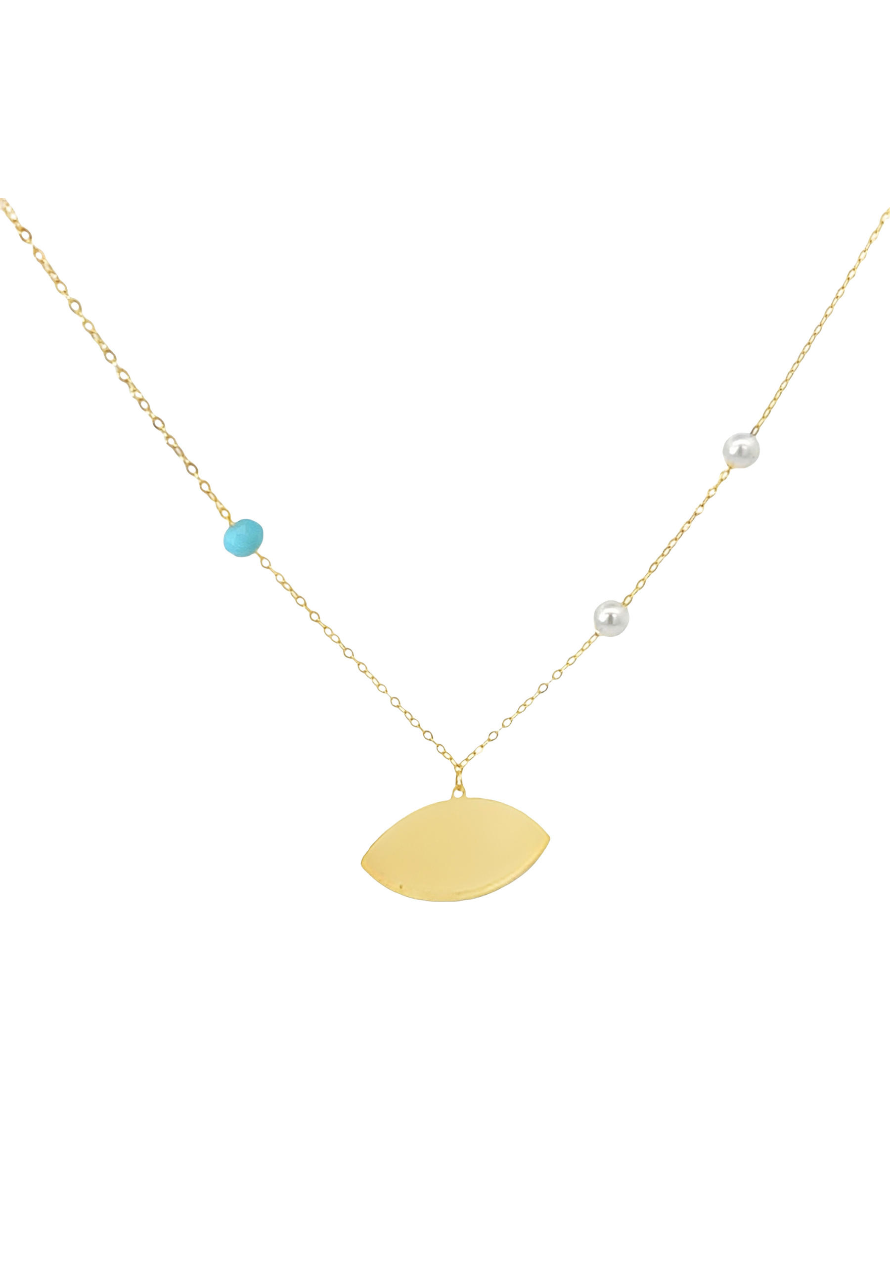 Dive into elegance with our exquisite 18KT Gold Necklace, featuring a beautifully crafted enamel fish pendant adorned with lustrous pearls on either side. Treat yourself or a loved one to this luxurious necklace and make a splash with every outfit.