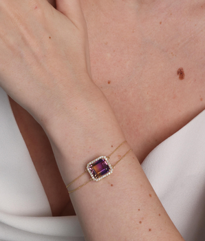 18KT Gold Pink Semi-Precious Stone Linked Chain Bracelet