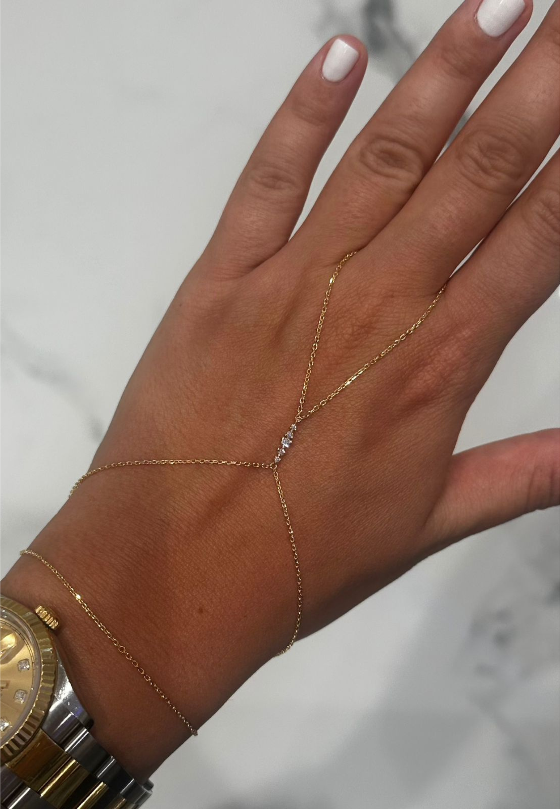 The 18KT Gold Lab Grown Diamond Hand Chain features sustainably created diamonds set in luxurious 18KT Gold. Elegant and eco-conscious, this timeless piece offers brilliant sparkle with a modern, responsible touch.
