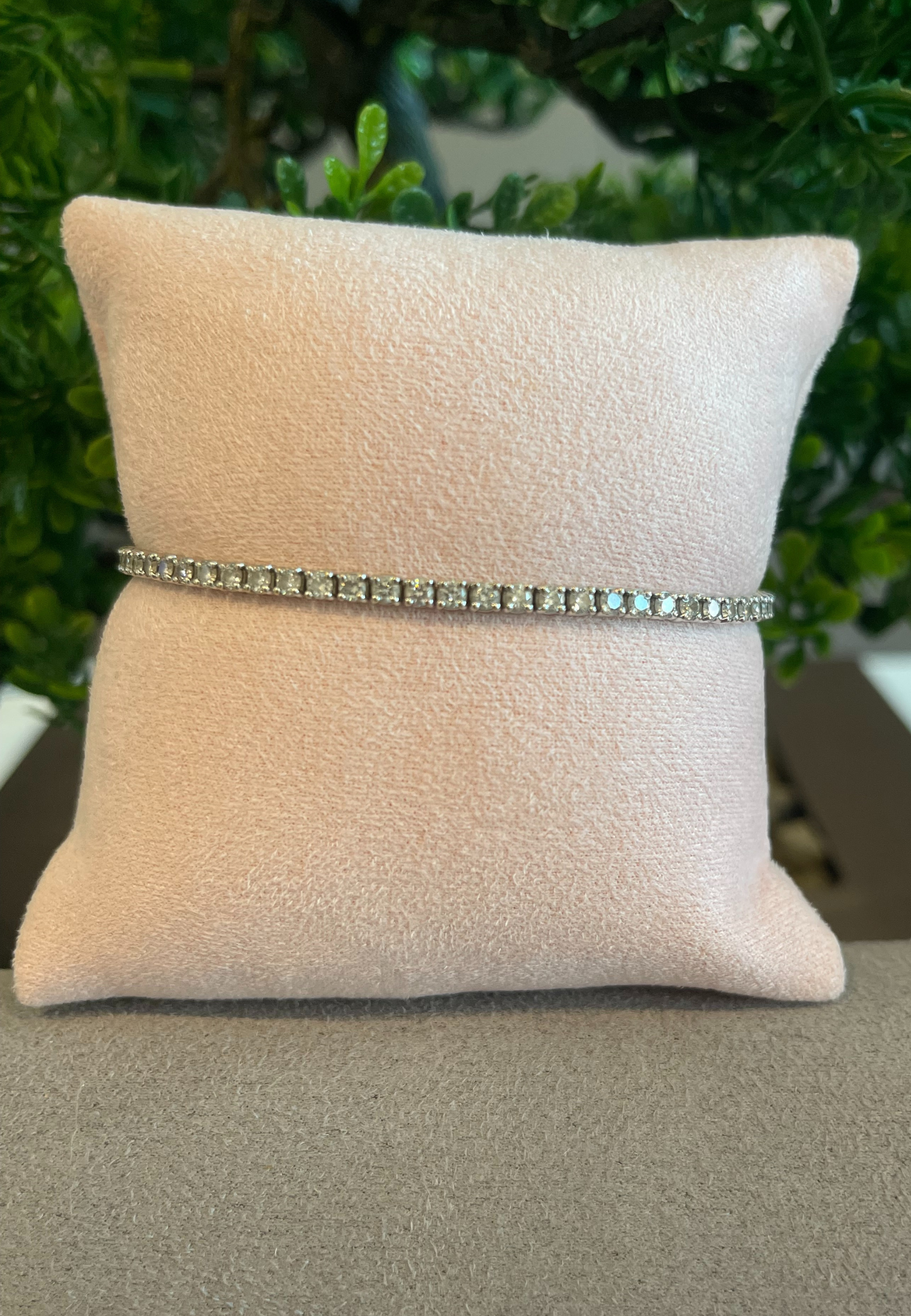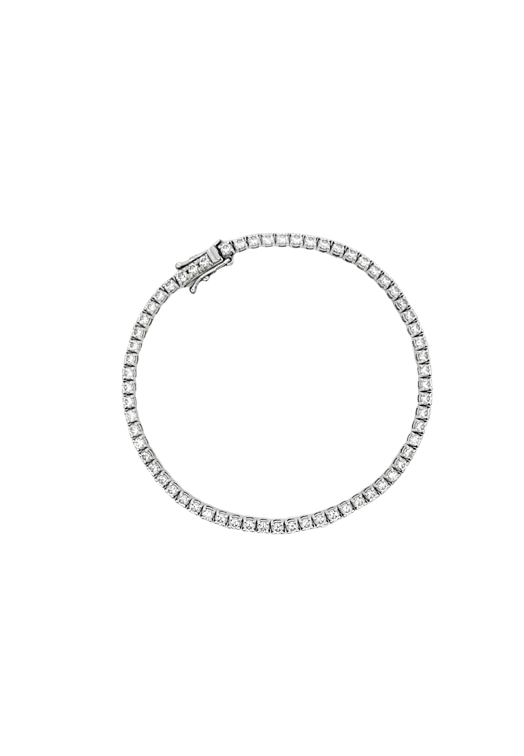 This 18KT white gold bracelet features a classic tennis design adorned with shimmering zircon stones, offering timeless elegance and refined sparkle. Perfect for both everyday wear and special occasions.