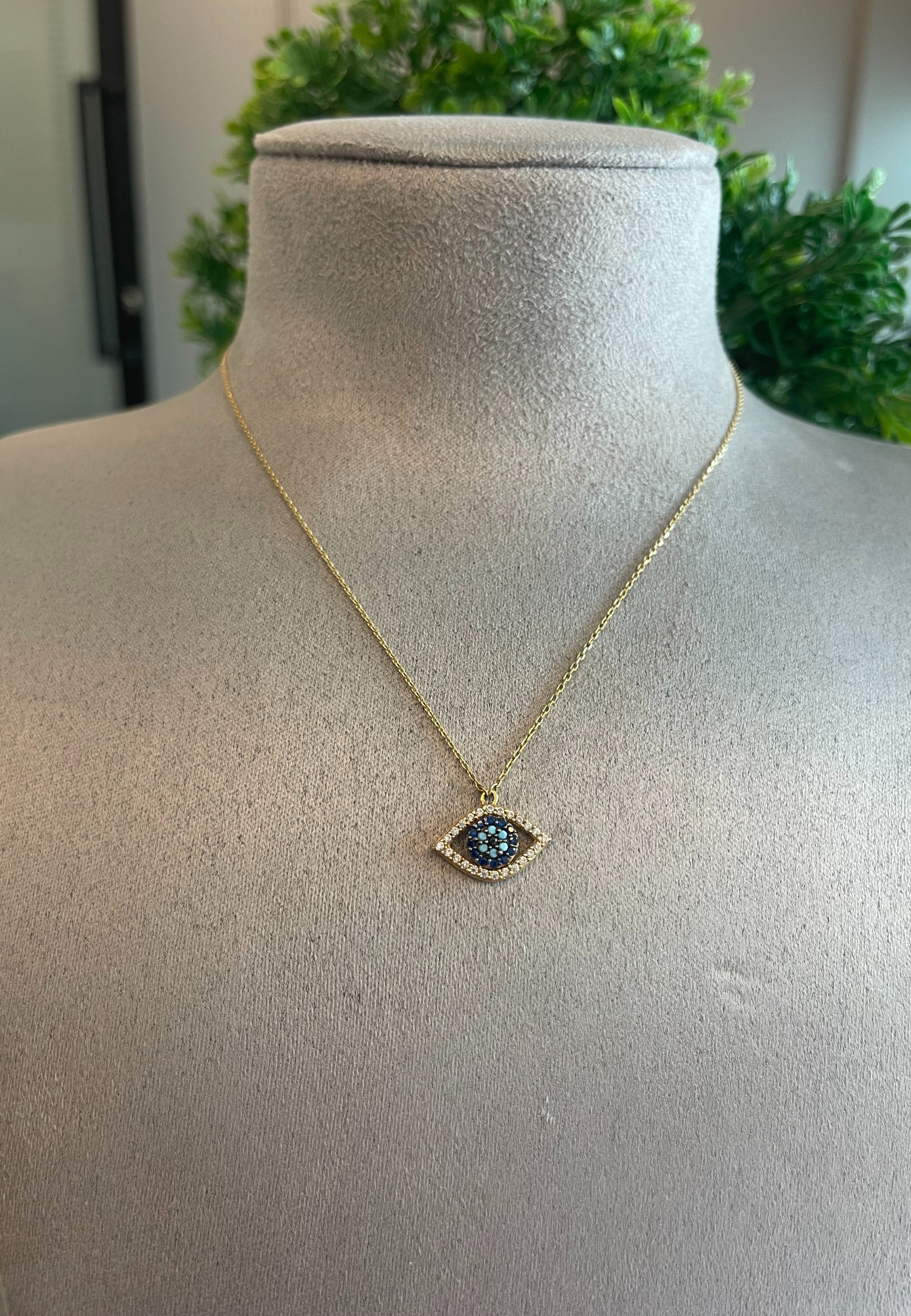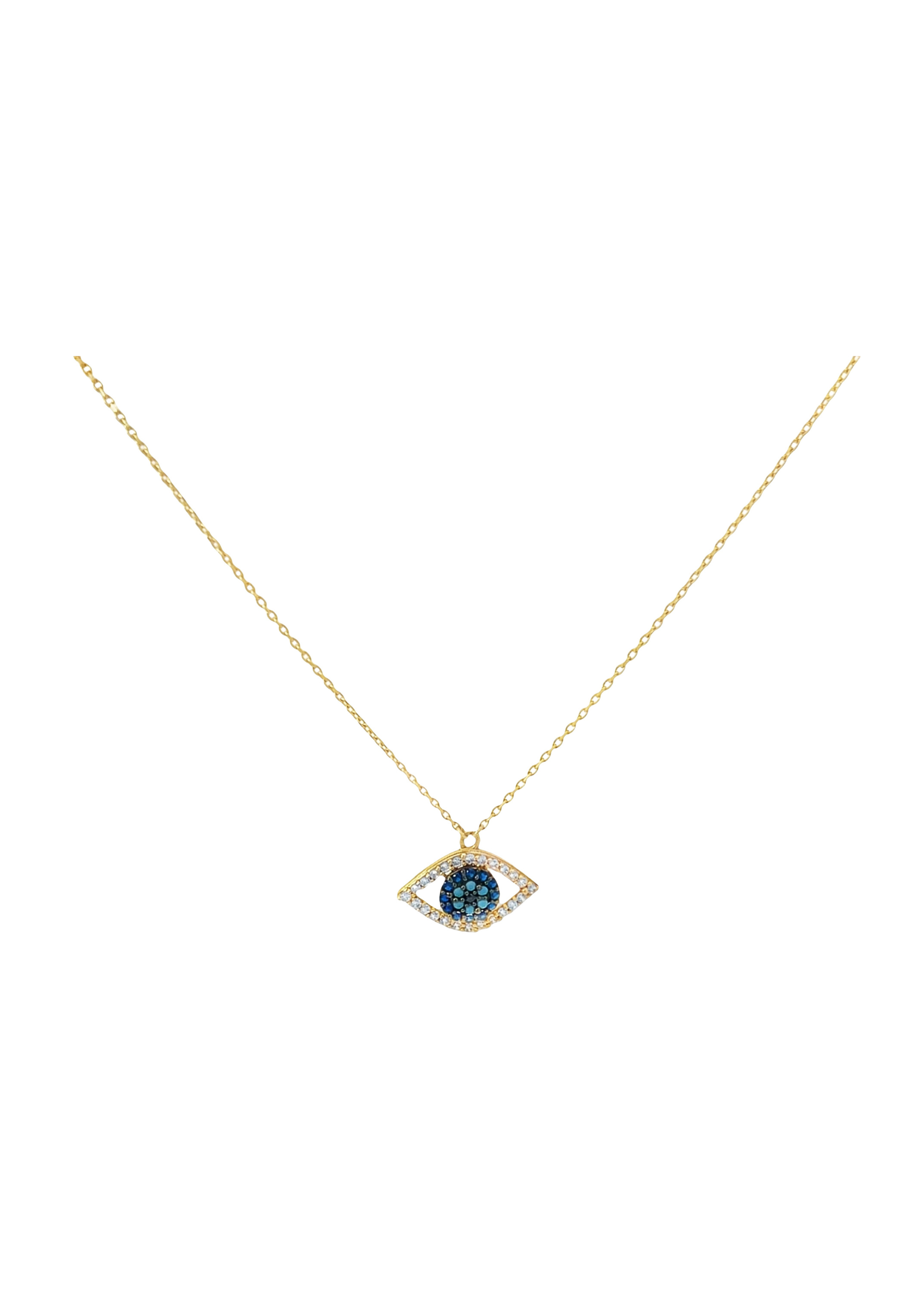 This 18KT Gold Necklace, featuring an enchanting evil eye pendant crafted from white and blue zircons. Its protective qualities, makes this necklace not only a stunning accessory but also a meaningful talisman.