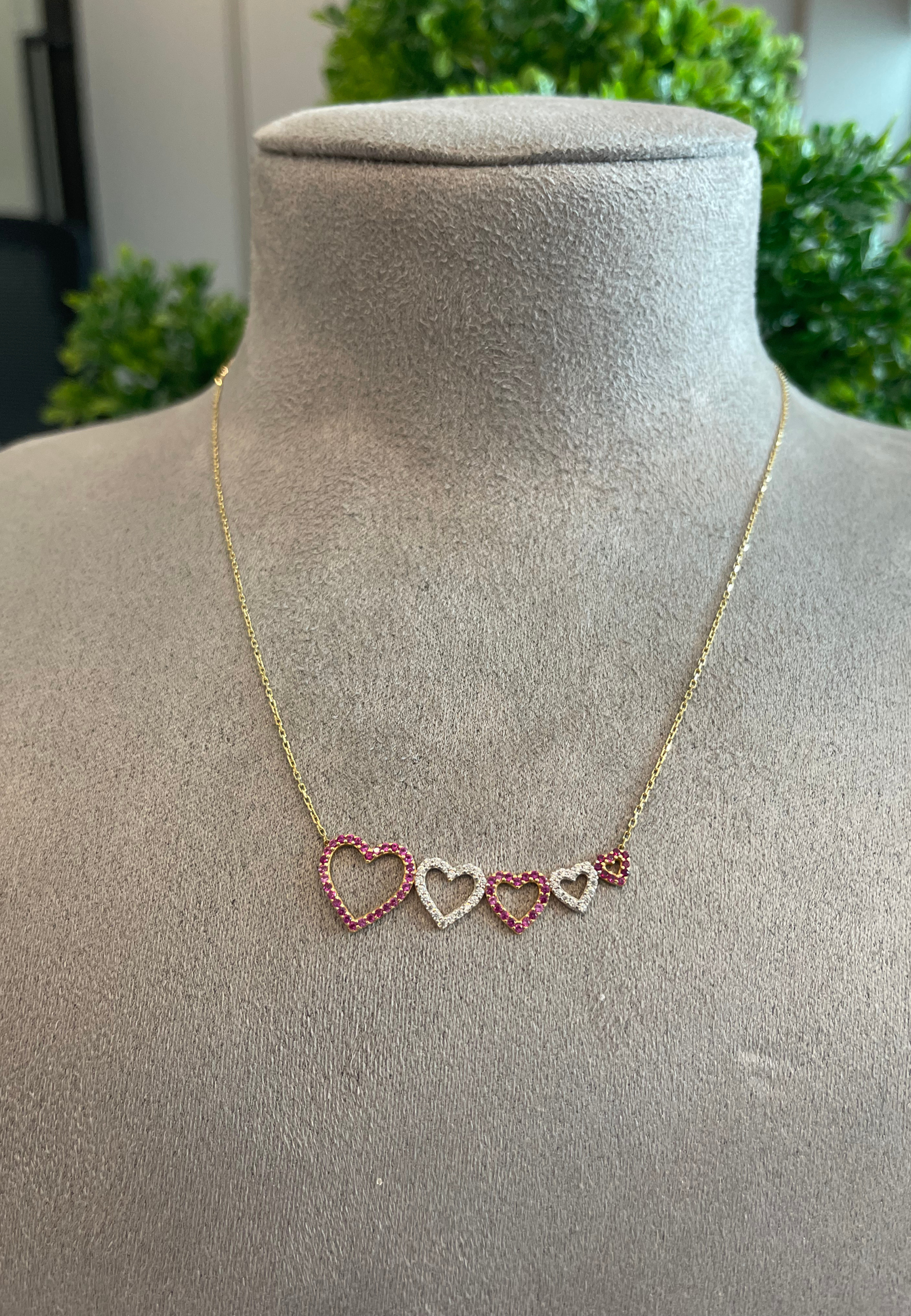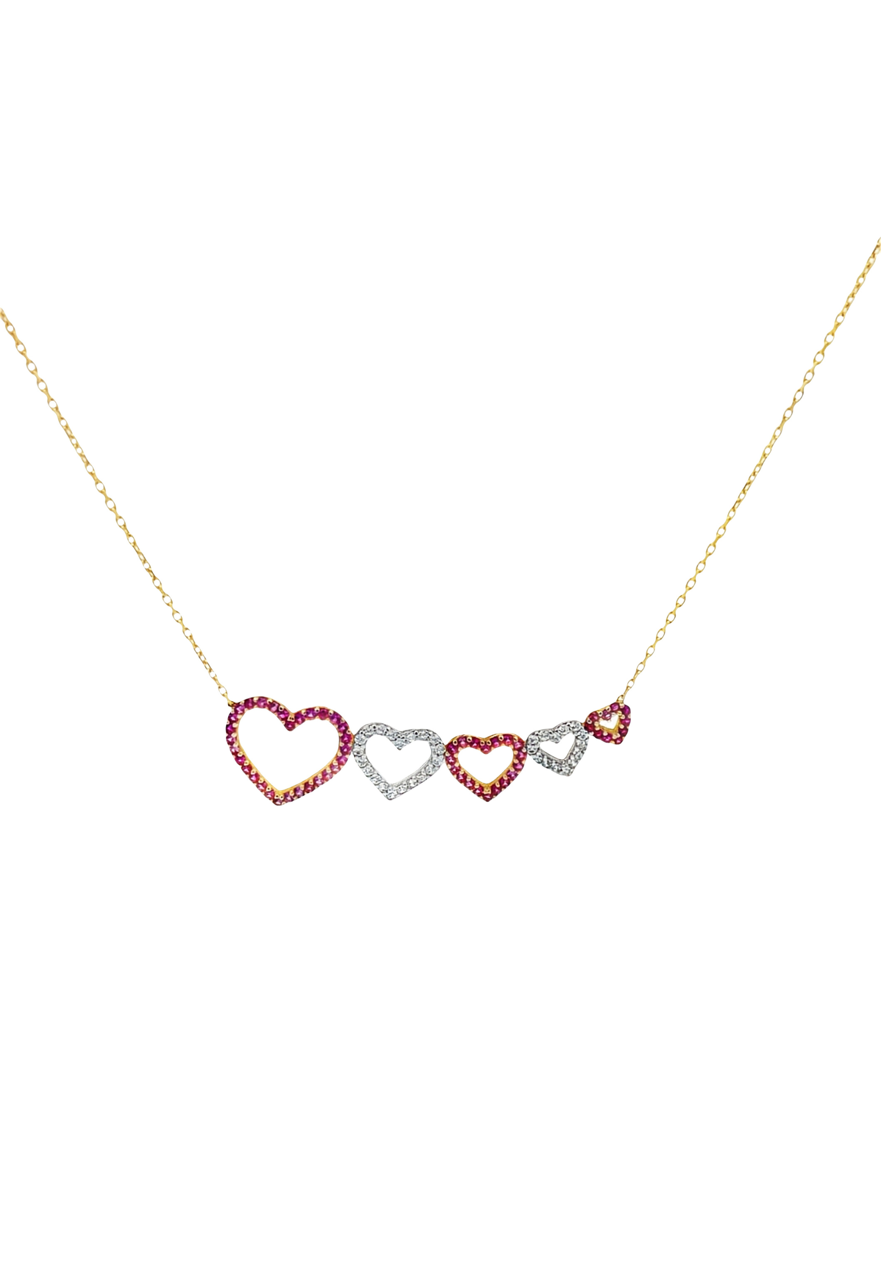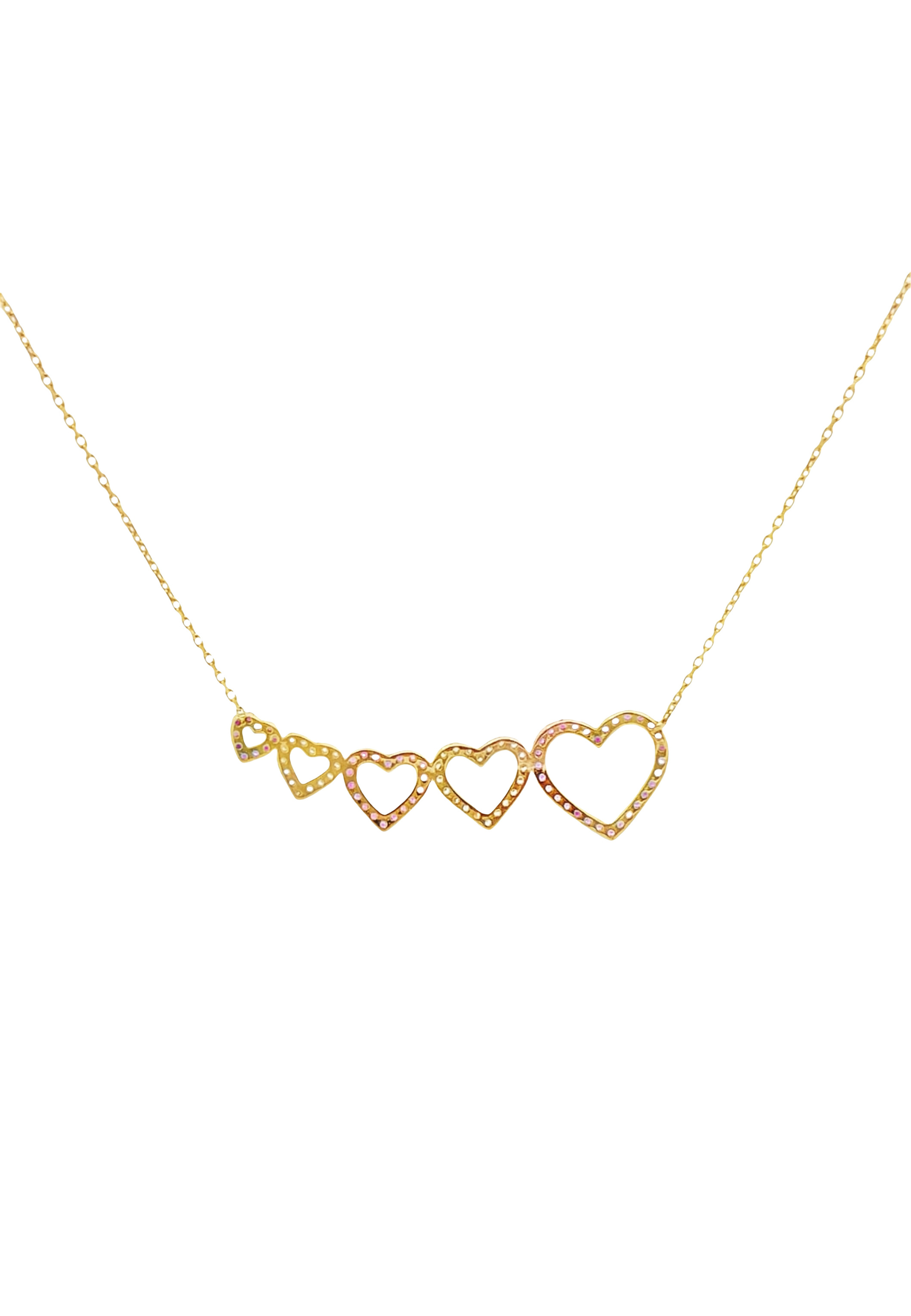 Discover the epitome of elegance with our 18KT Gold Layered Necklace featuring intricately crafted hearts adorned with sparkling zircon stones.