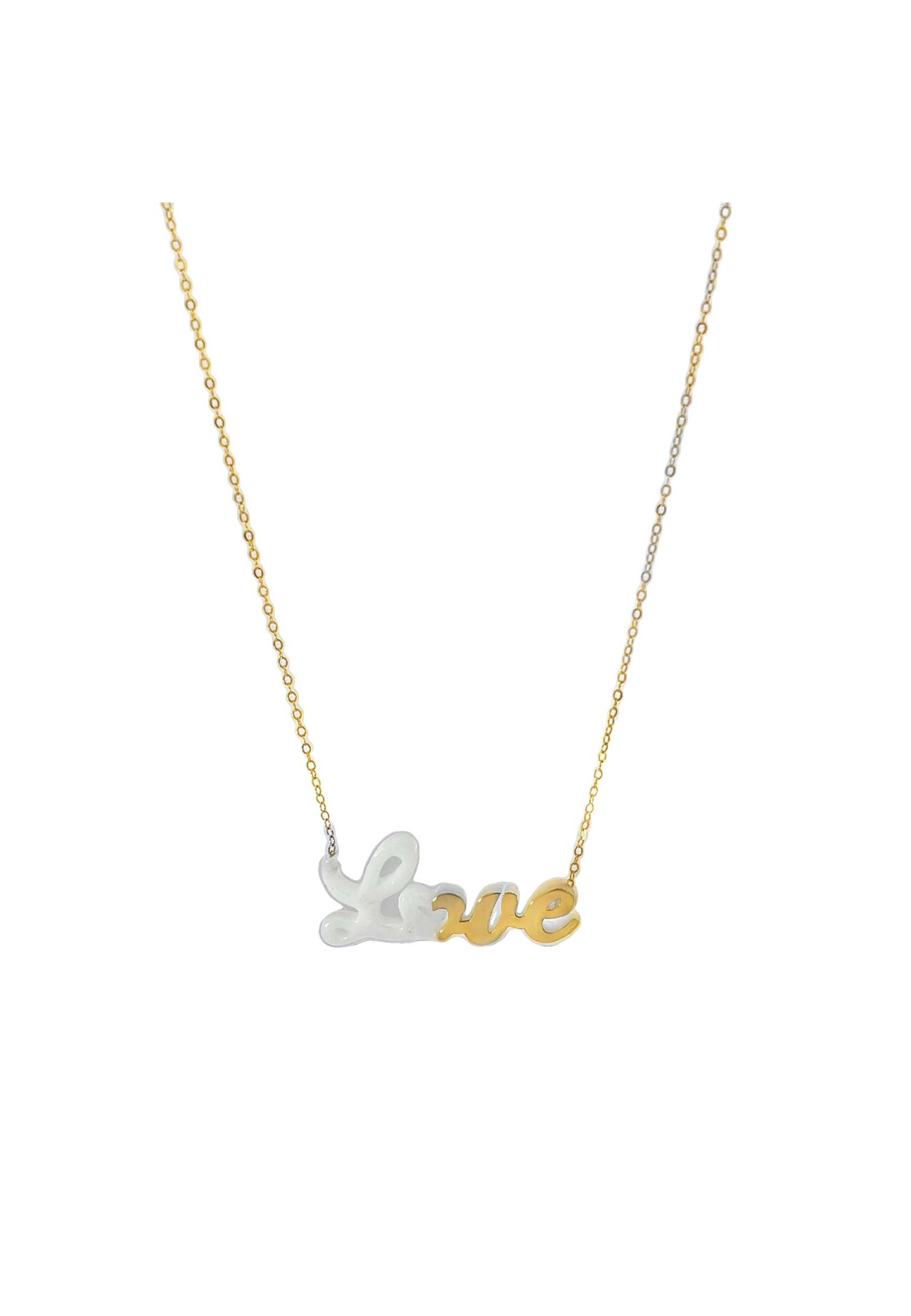 Celebrate love in its purest form with our enchanting 18KT Gold Necklace, where the word "love" is elegantly split between radiant gold and pristine white material. This is an ideal gift for expressing affection and commitment, whether worn as a heartfelt gesture or as a cherished personal piece.