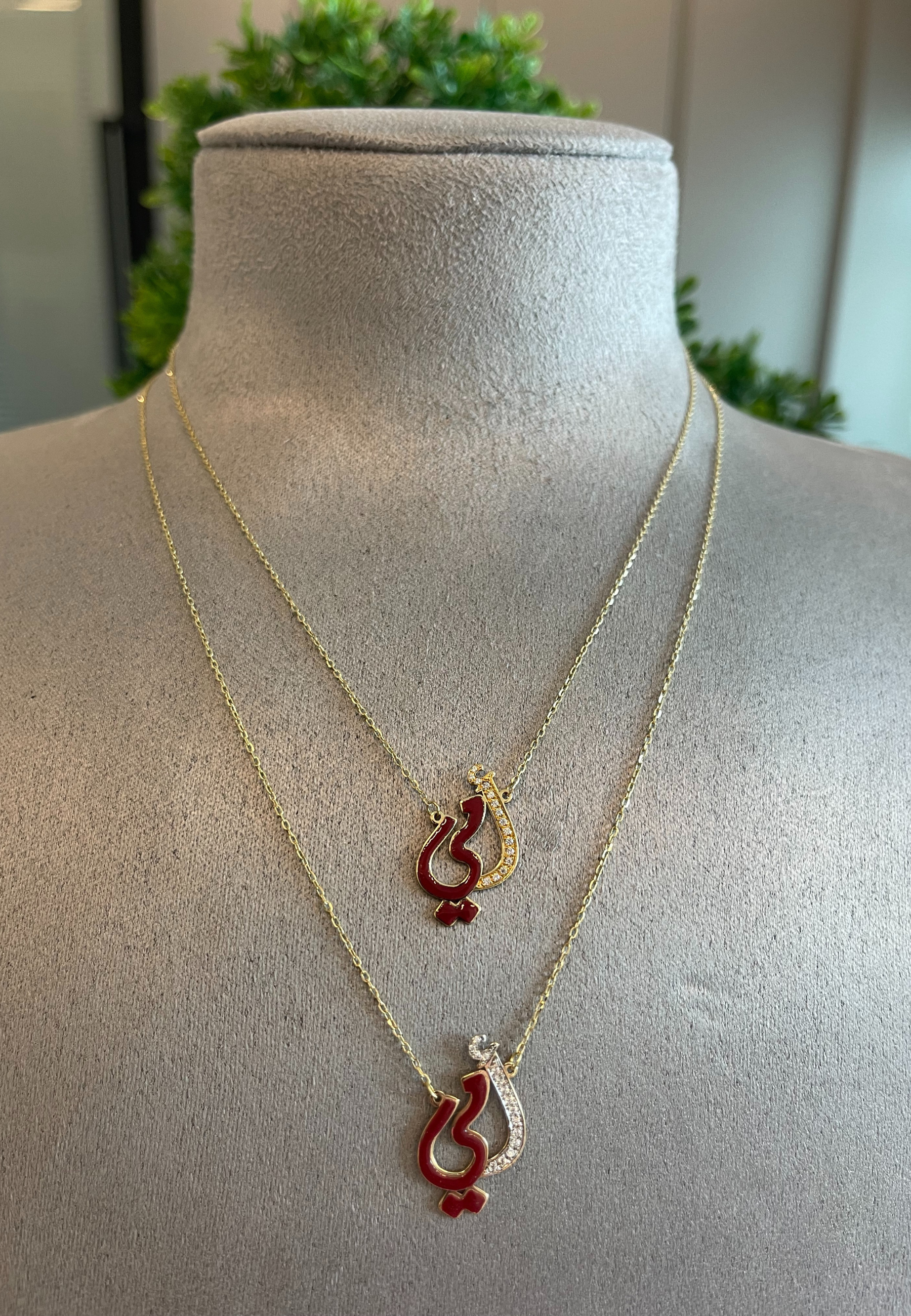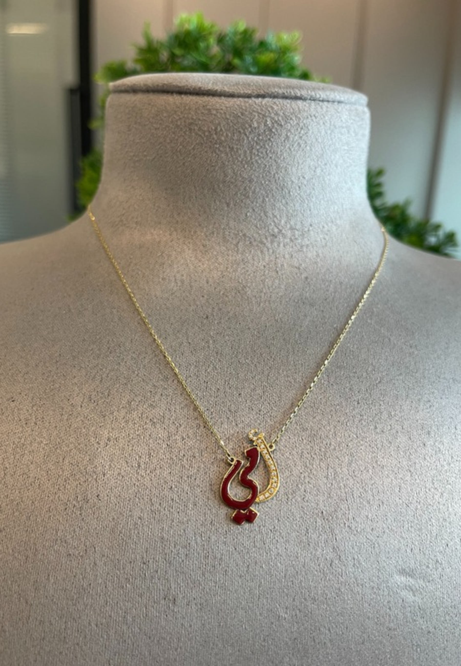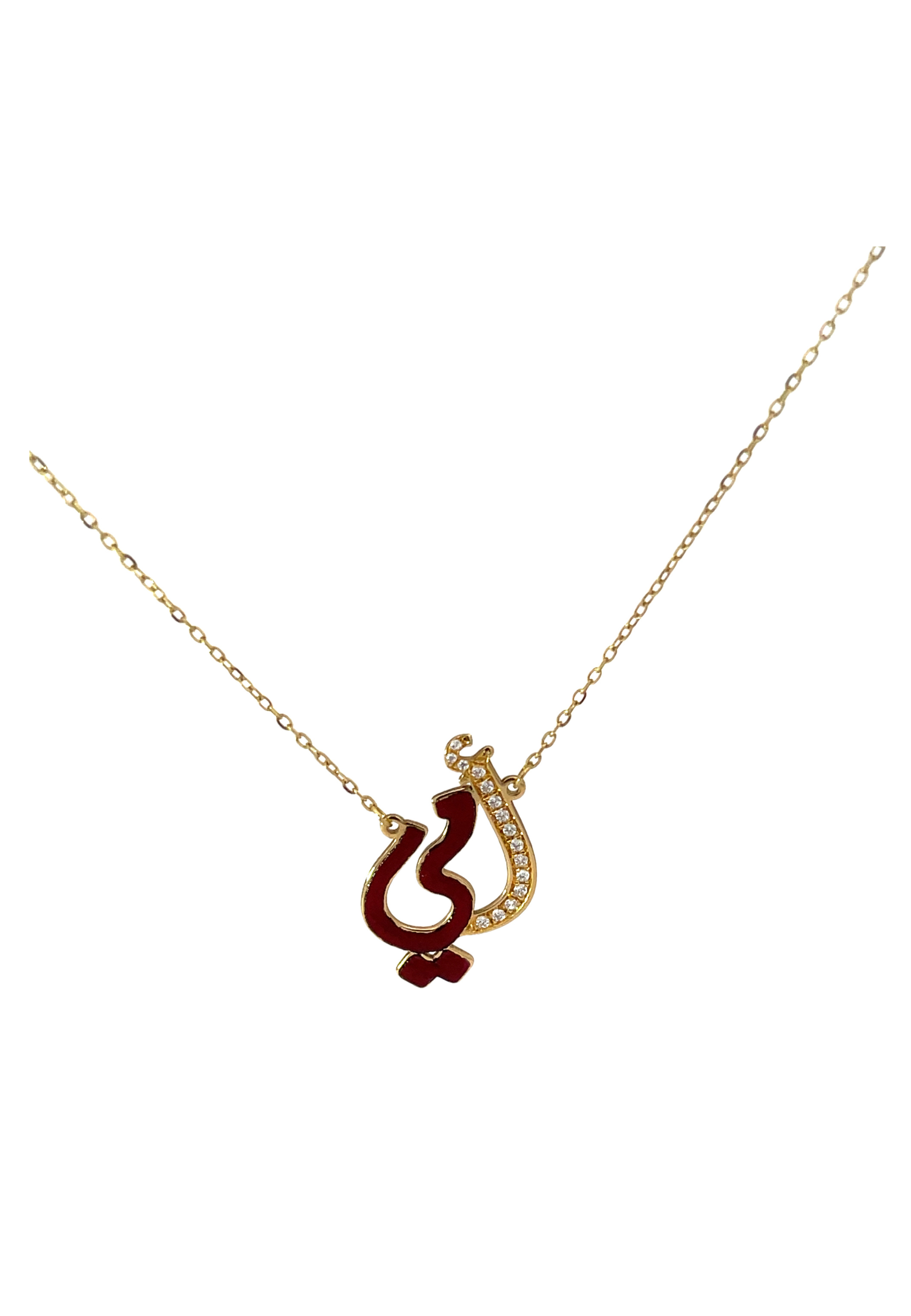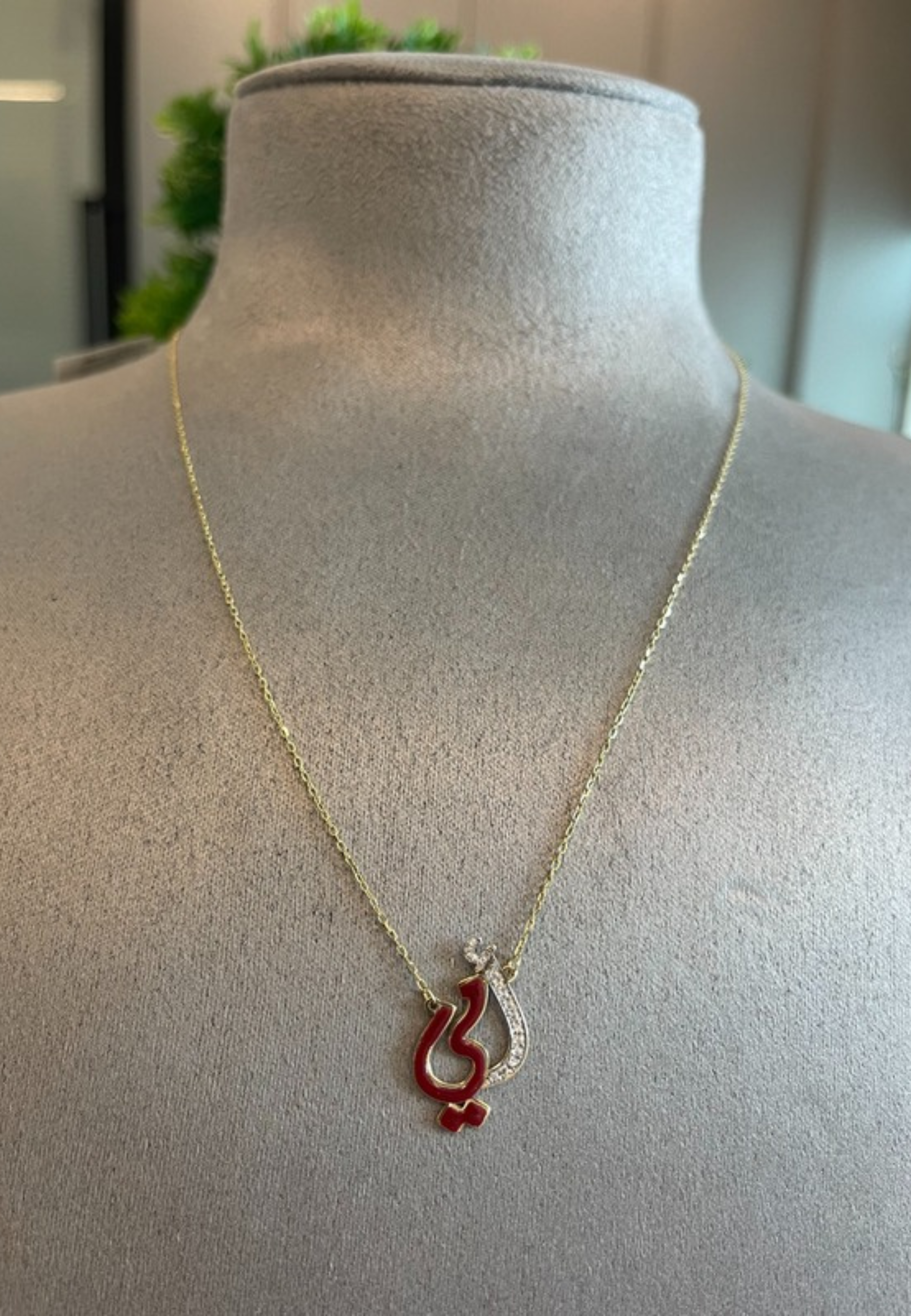 The 18KT Gold Red Enamel Zircon Necklace features a vibrant red enamel accent paired with a sparkling zircon stone, all set in luxurious 18KT Gold. This bold yet elegant piece adds a pop of color and brilliance to any outfit.