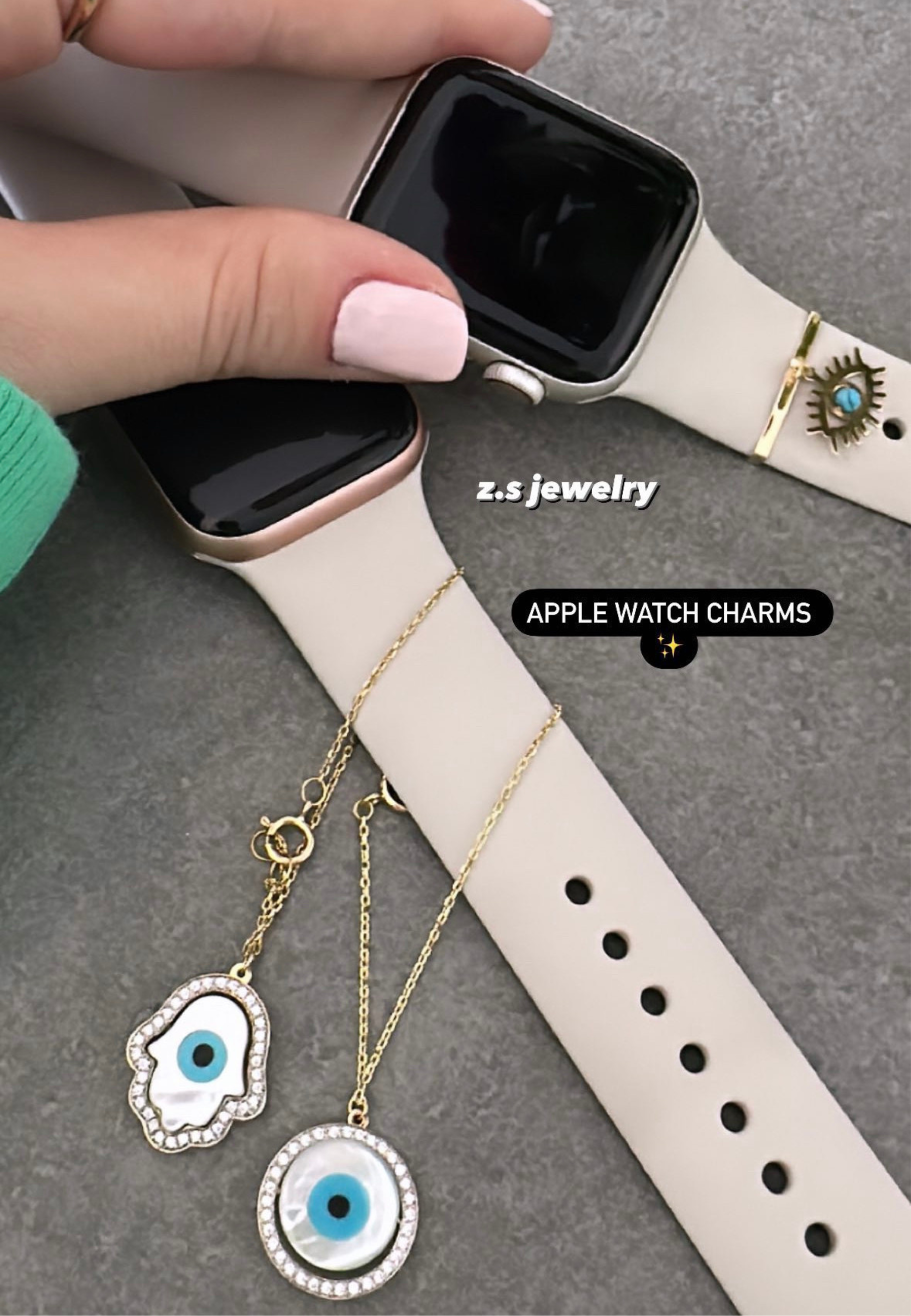 The 18KT Gold Round Eye with Zircon Watch Charm features a protective eye design, accented with sparkling zircon stones. Crafted from luxurious 18KT Gold, this elegant charm adds a touch of spiritual symbolism and style to any watch.