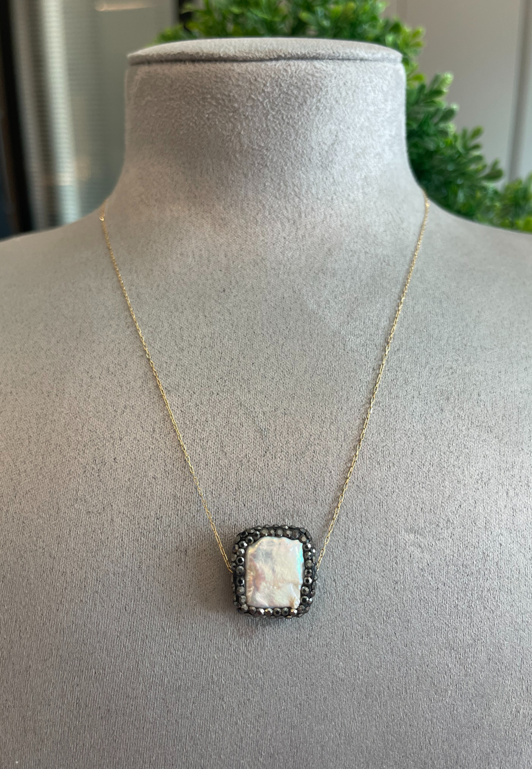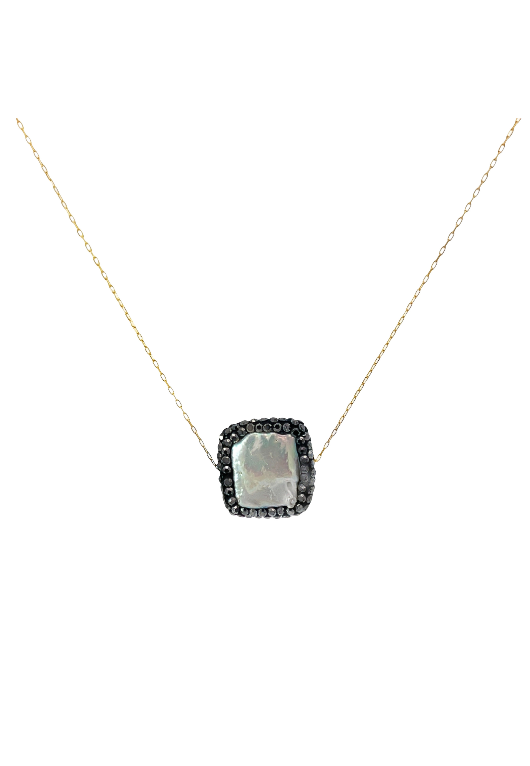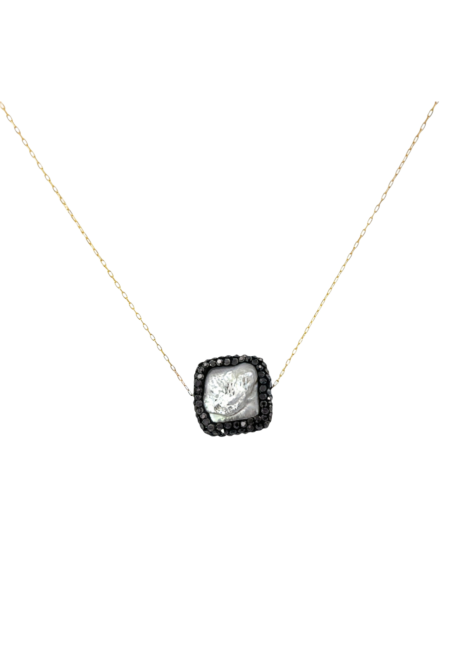 18KT Gold Square Black Zircon Necklace