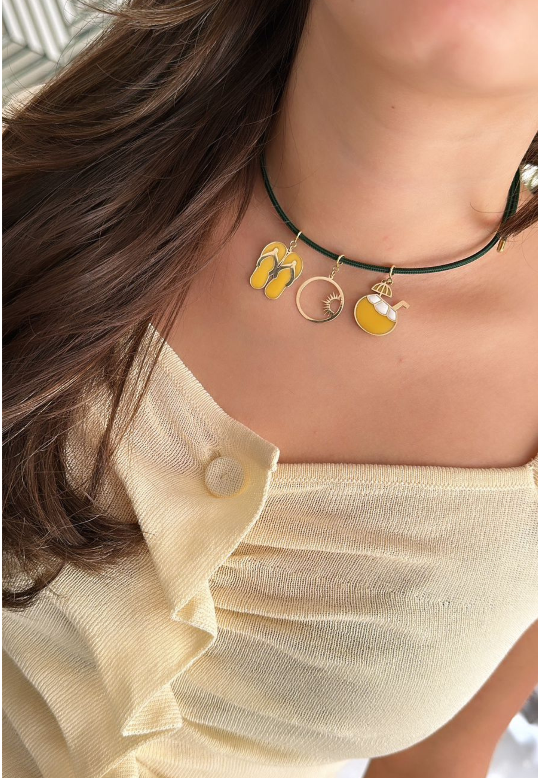 Crafted in 18KT gold, this enamel flip-flop charm features a fun and summery design with vibrant detailing, a playful reminder of beach days and sunny adventures.