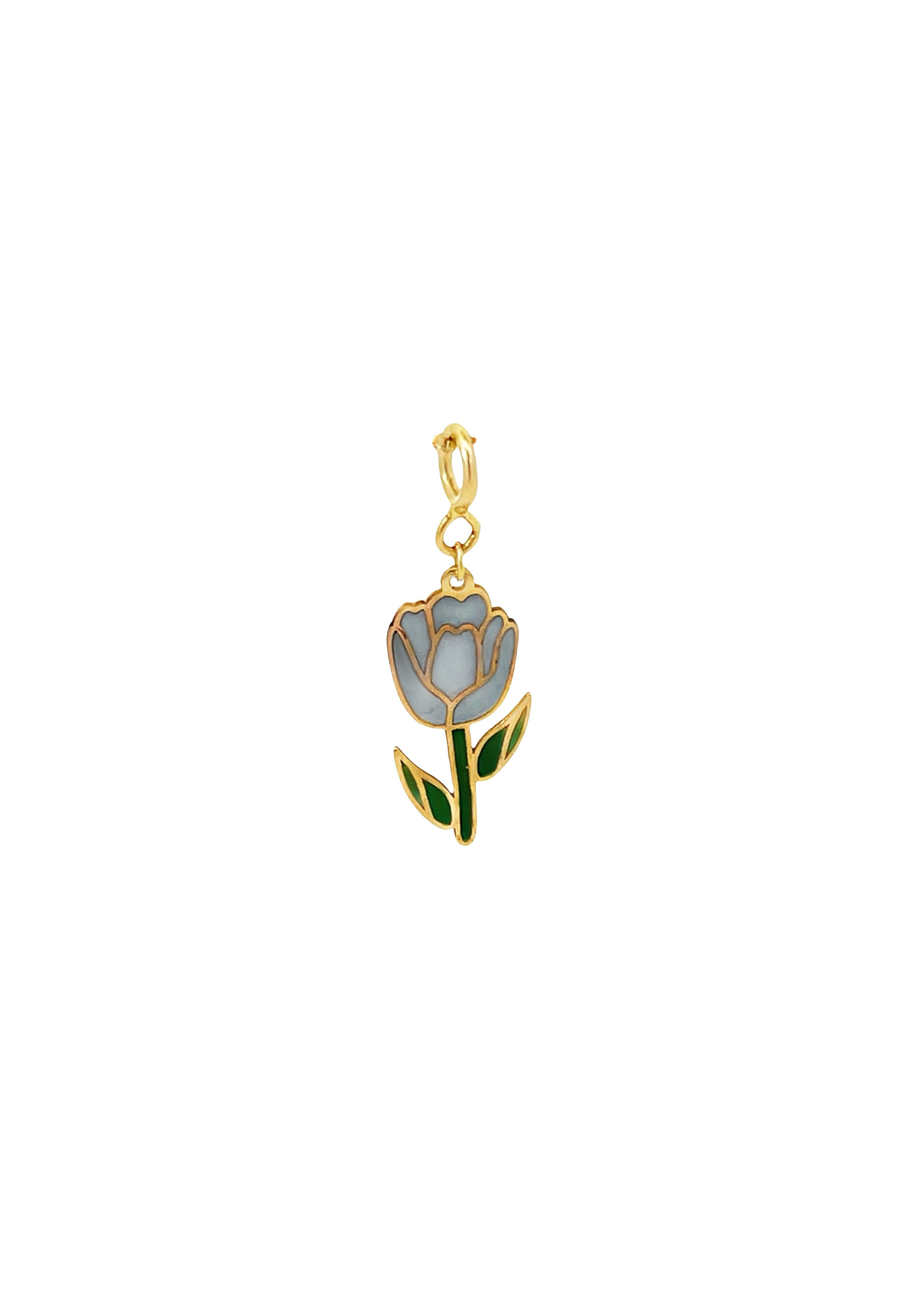 These 18KT gold tulip flower charms are beautifully accented with colorful enamel, capturing the delicate elegance of blooming tulips. A charming addition to spring-inspired or floral-themed jewelry collections.