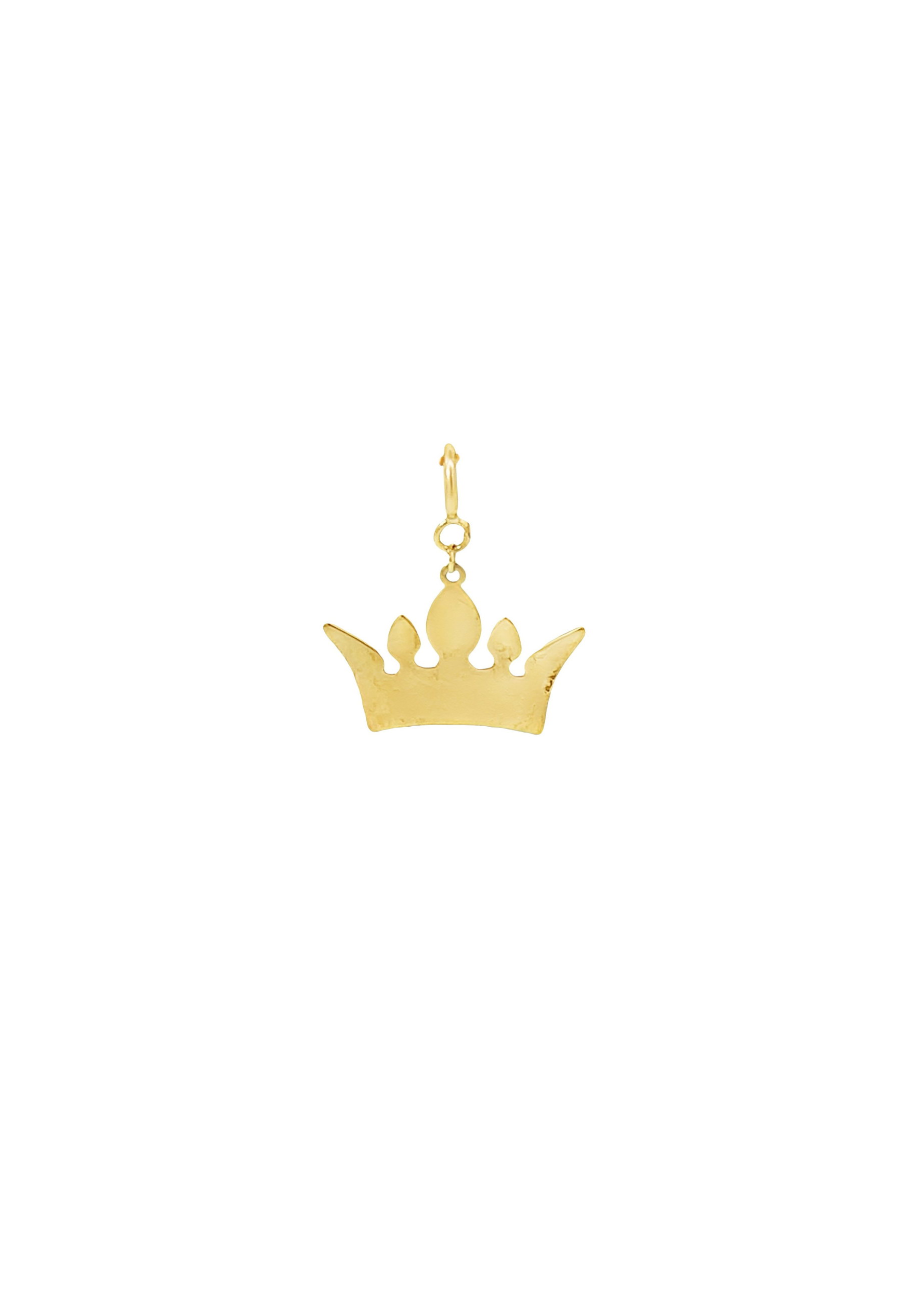 The 18KT Gold Pink Enamel Crown Charm showcases a regal crown design accented with soft pink enamel, adding a playful yet royal touch to any charm collection.