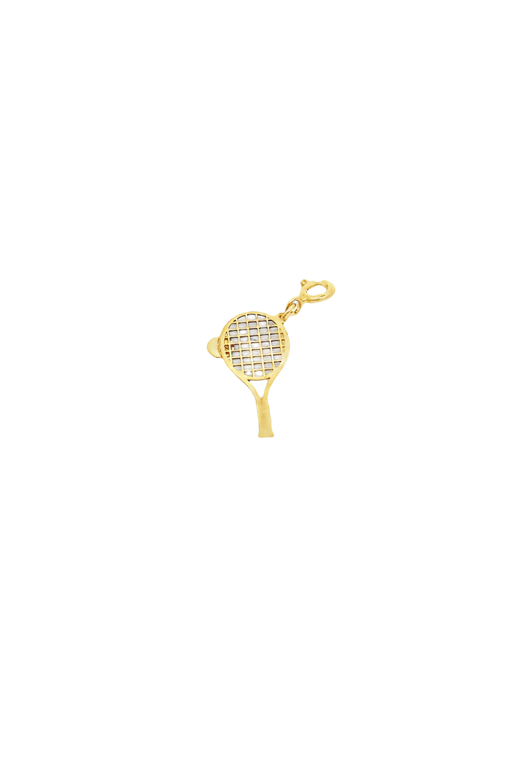 Serve up style with this 18KT gold tennis racket charm, featuring a finely detailed design that captures the spirit of the game, a perfect piece for tennis lovers and sports enthusiasts.