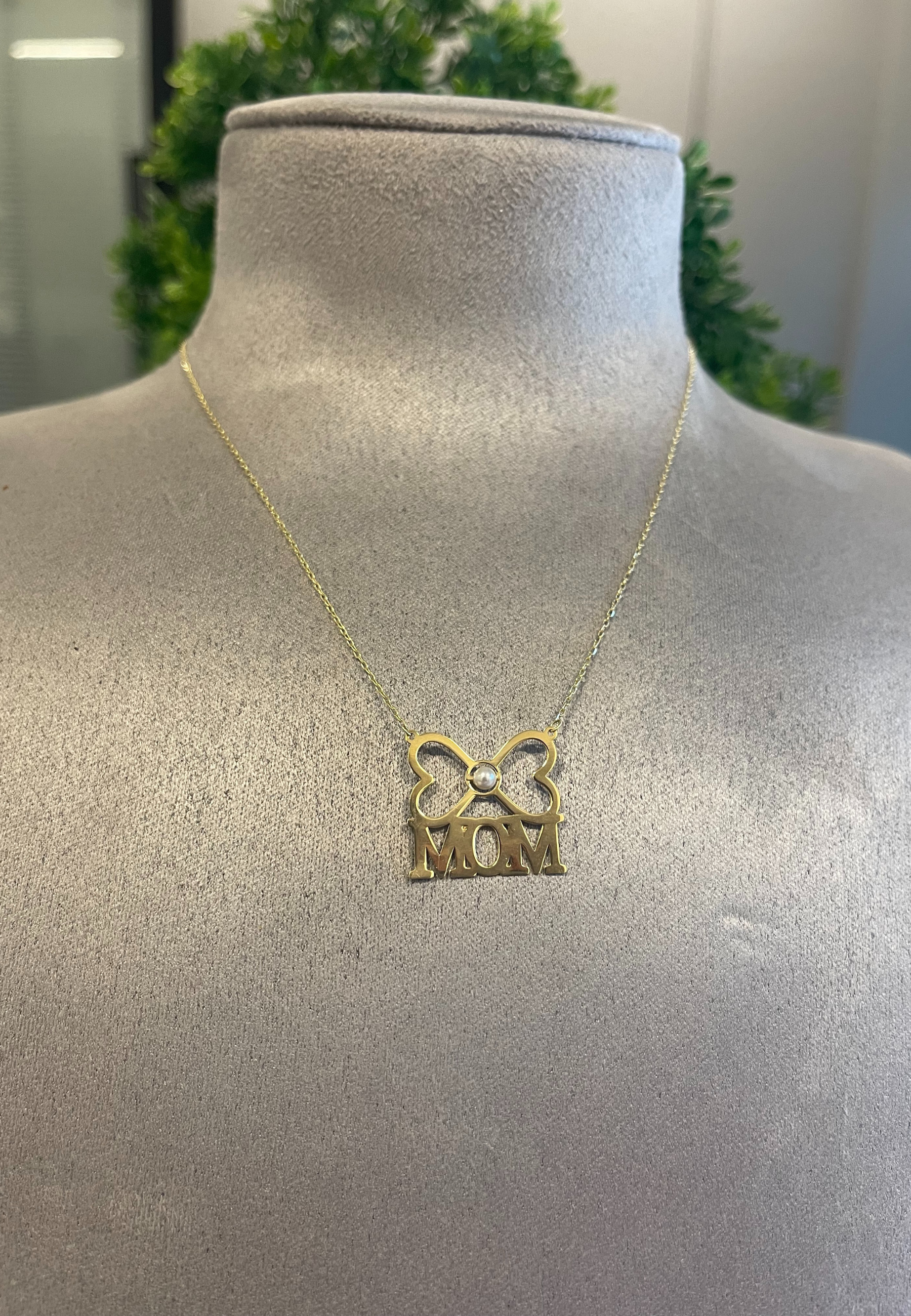 The 18KT Gold Mom Twin Hearts with Pearl Necklace features two intertwined heart motifs with a lustrous pearl accent, beautifully crafted from luxurious 18KT Gold. This elegant piece is a heartfelt symbol of love and appreciation, making it a meaningful accessory.