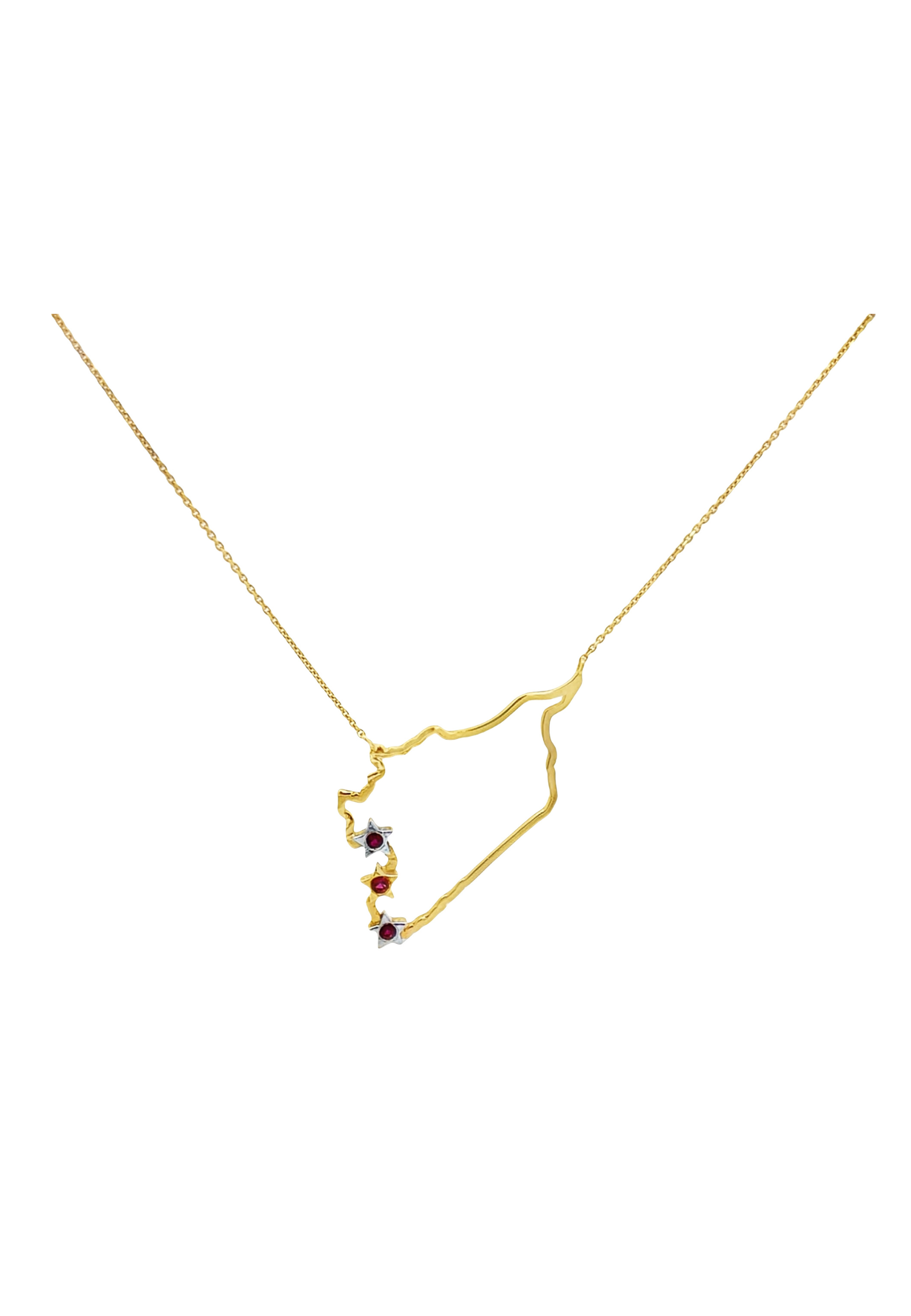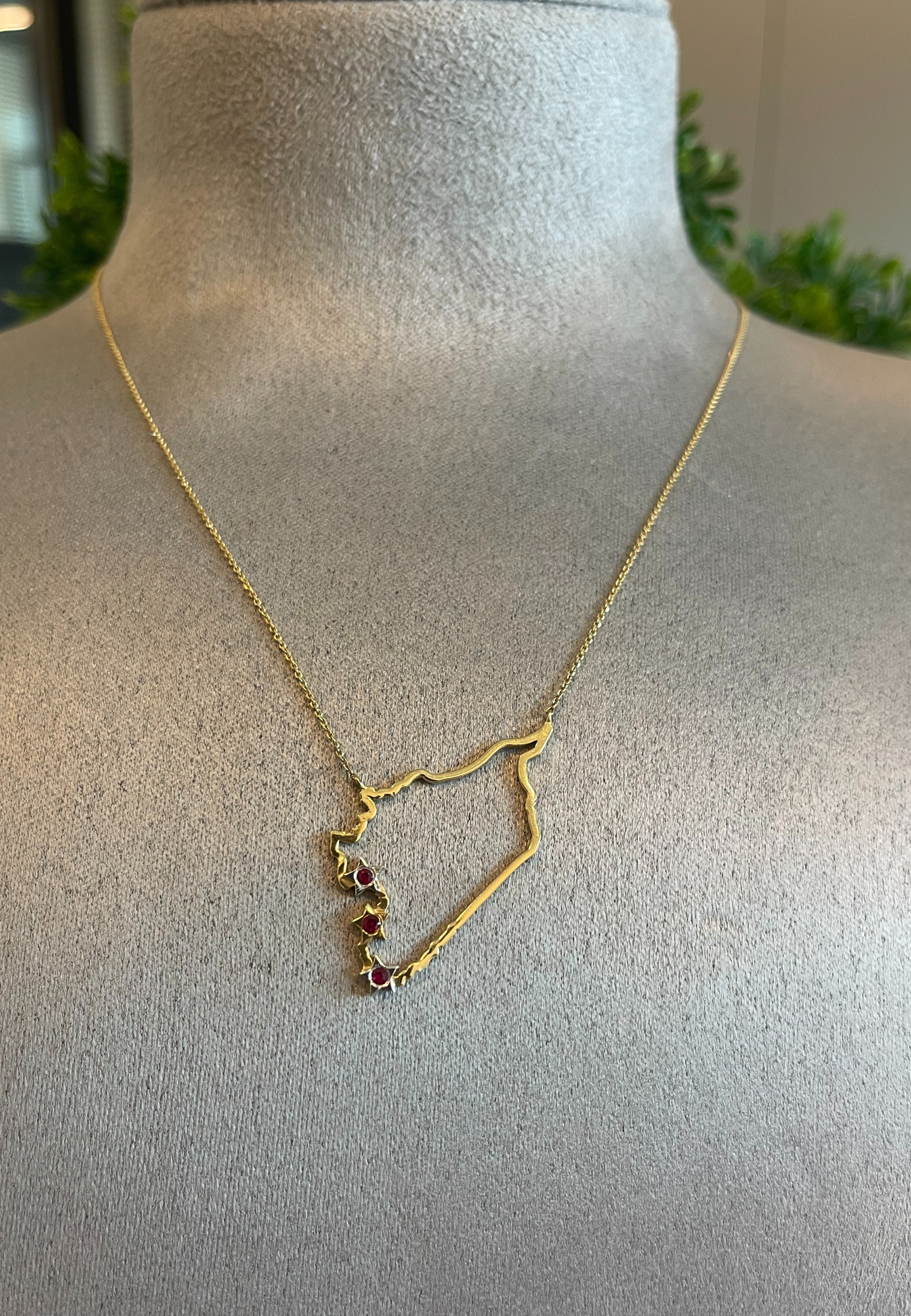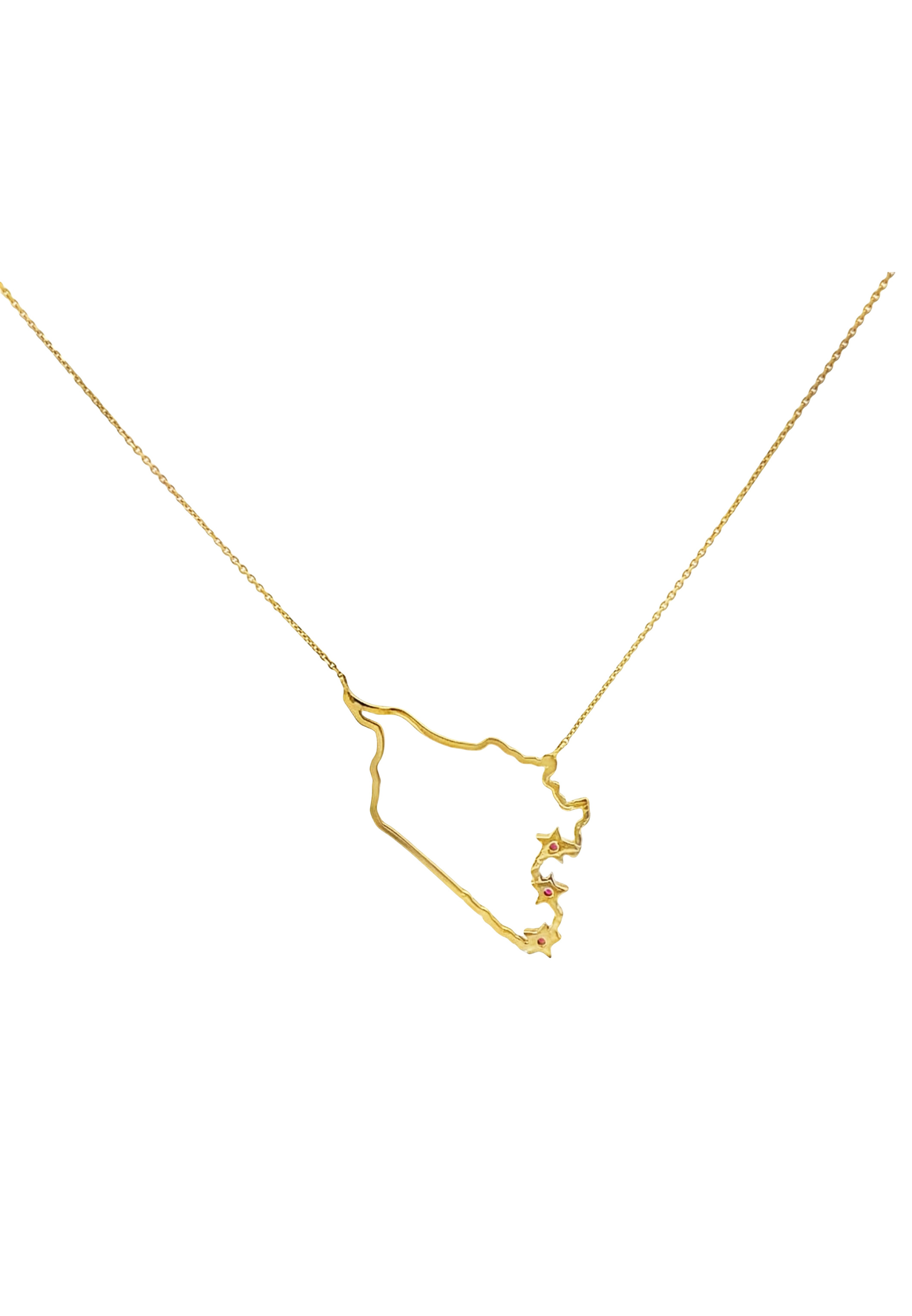 18KT Gold Map Necklace with Ruby