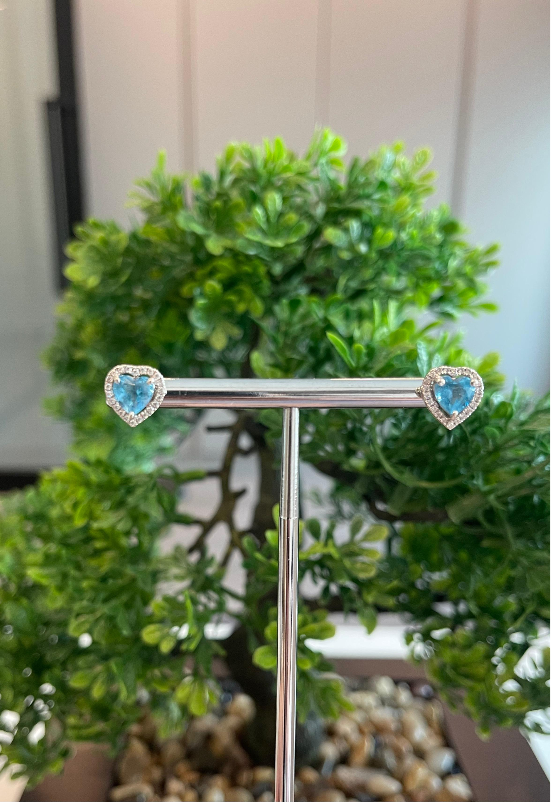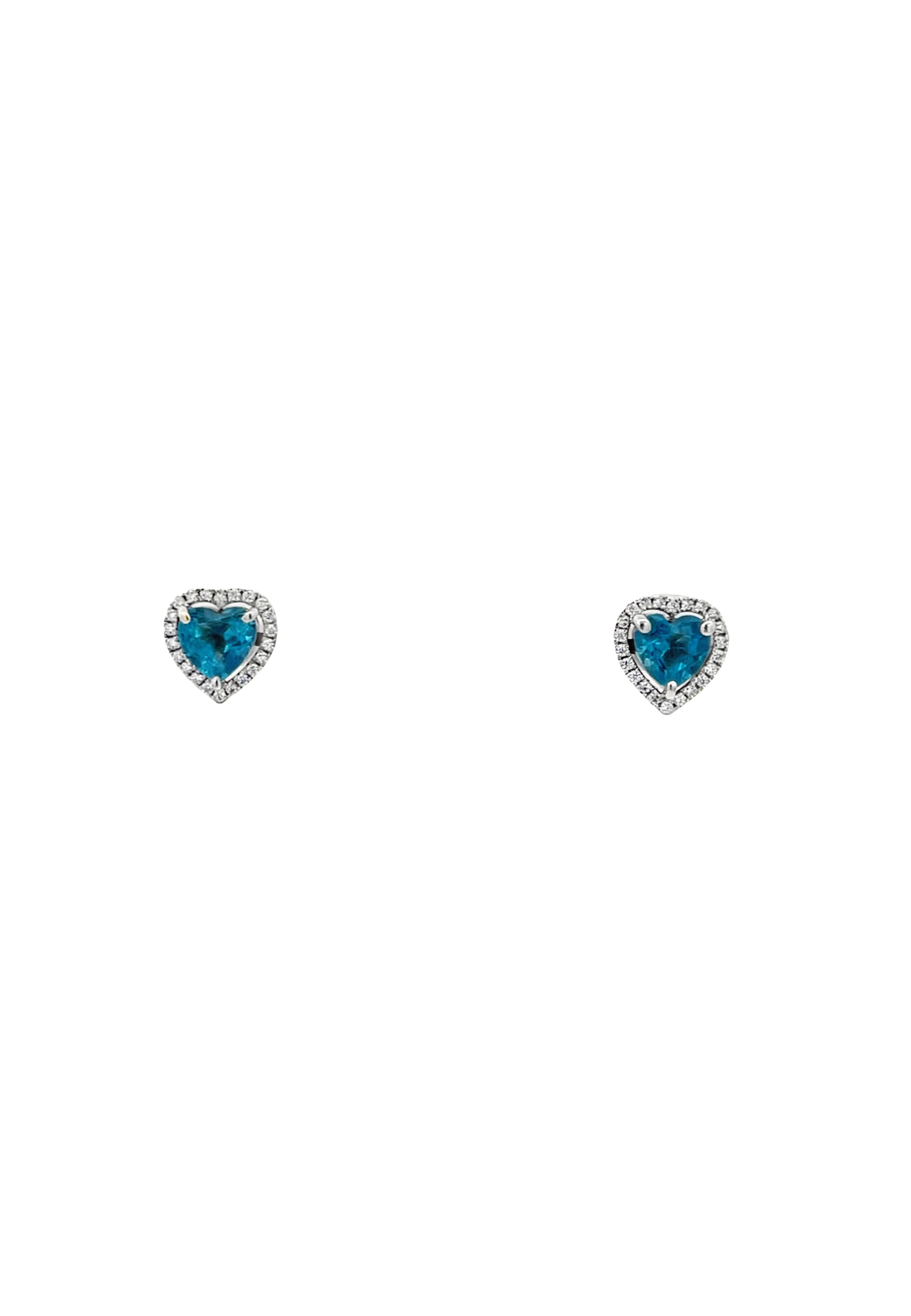 These 18KT white gold earrings showcase heart-shaped blue topaz stones accented with shimmering zircon, offering a radiant blend of color and sparkle. A timeless and elegant accessory for any occasion.