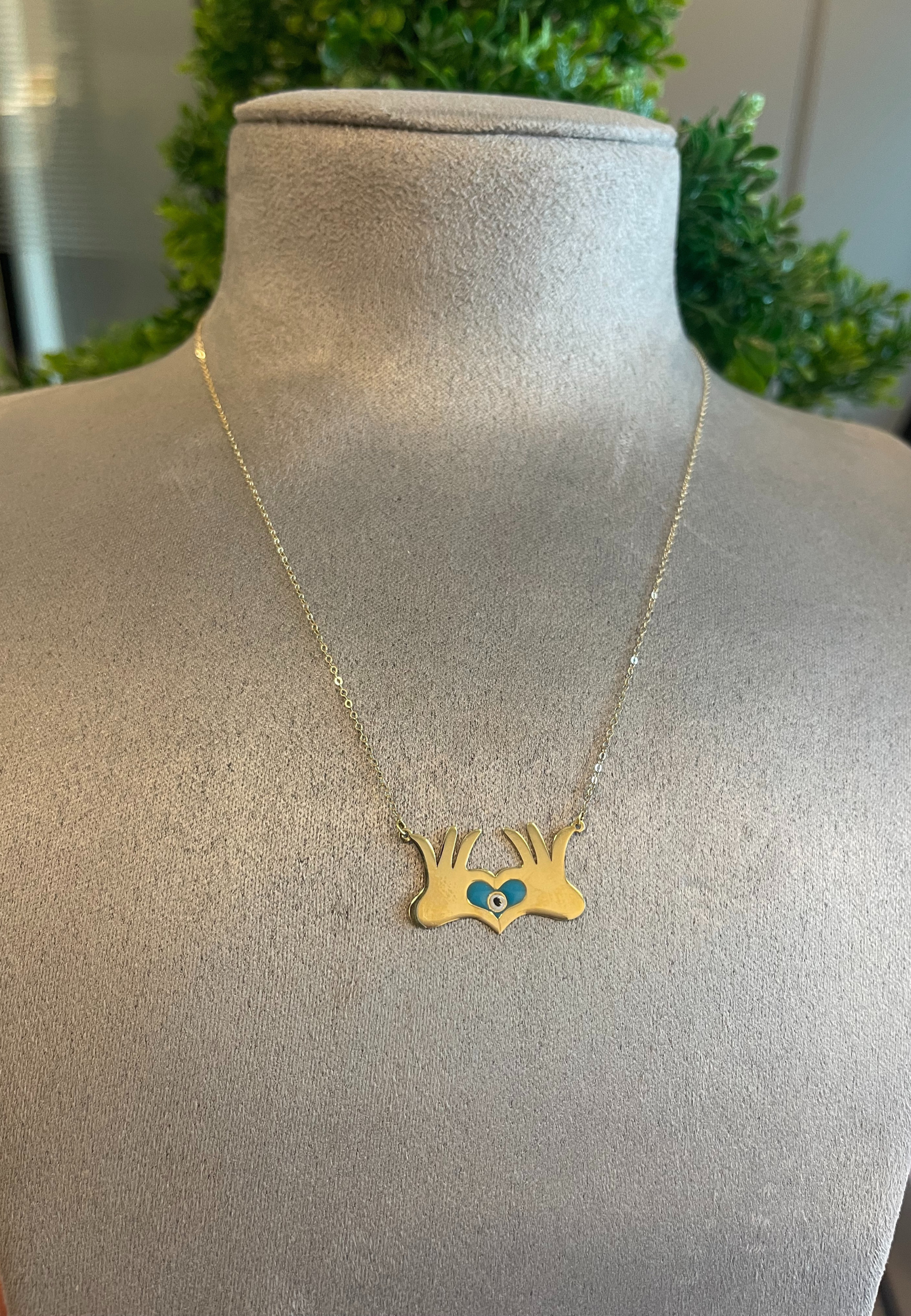 Enhance your jewelry collection with our charming 18KT Gold Necklace, featuring a unique and heartfelt design. The combination of the handcrafted heart and the meaningful evil eye symbol adds a touch of personalized style and protection to your look.