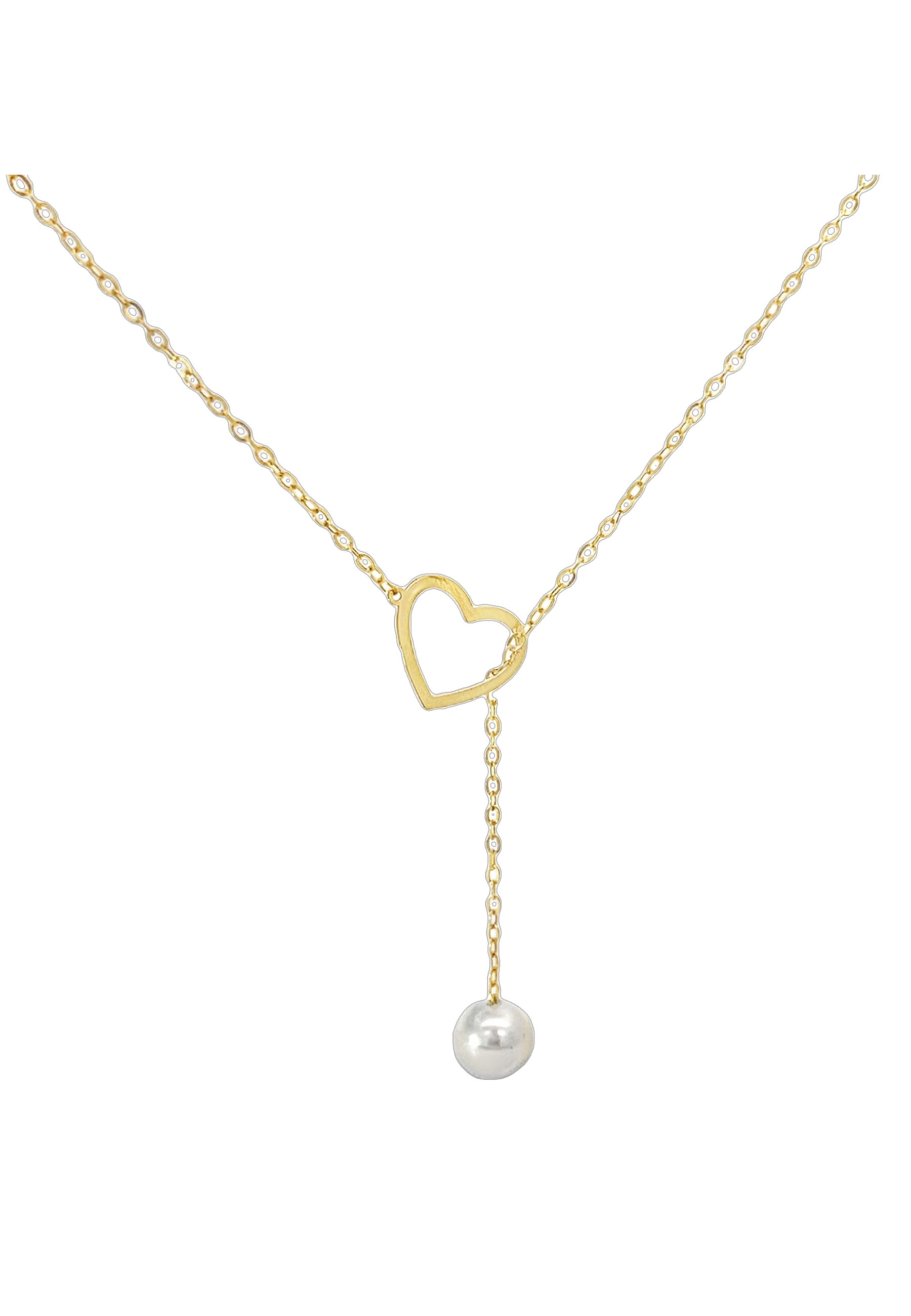 18KT Gold Heart Necklace with Dangling Pearl