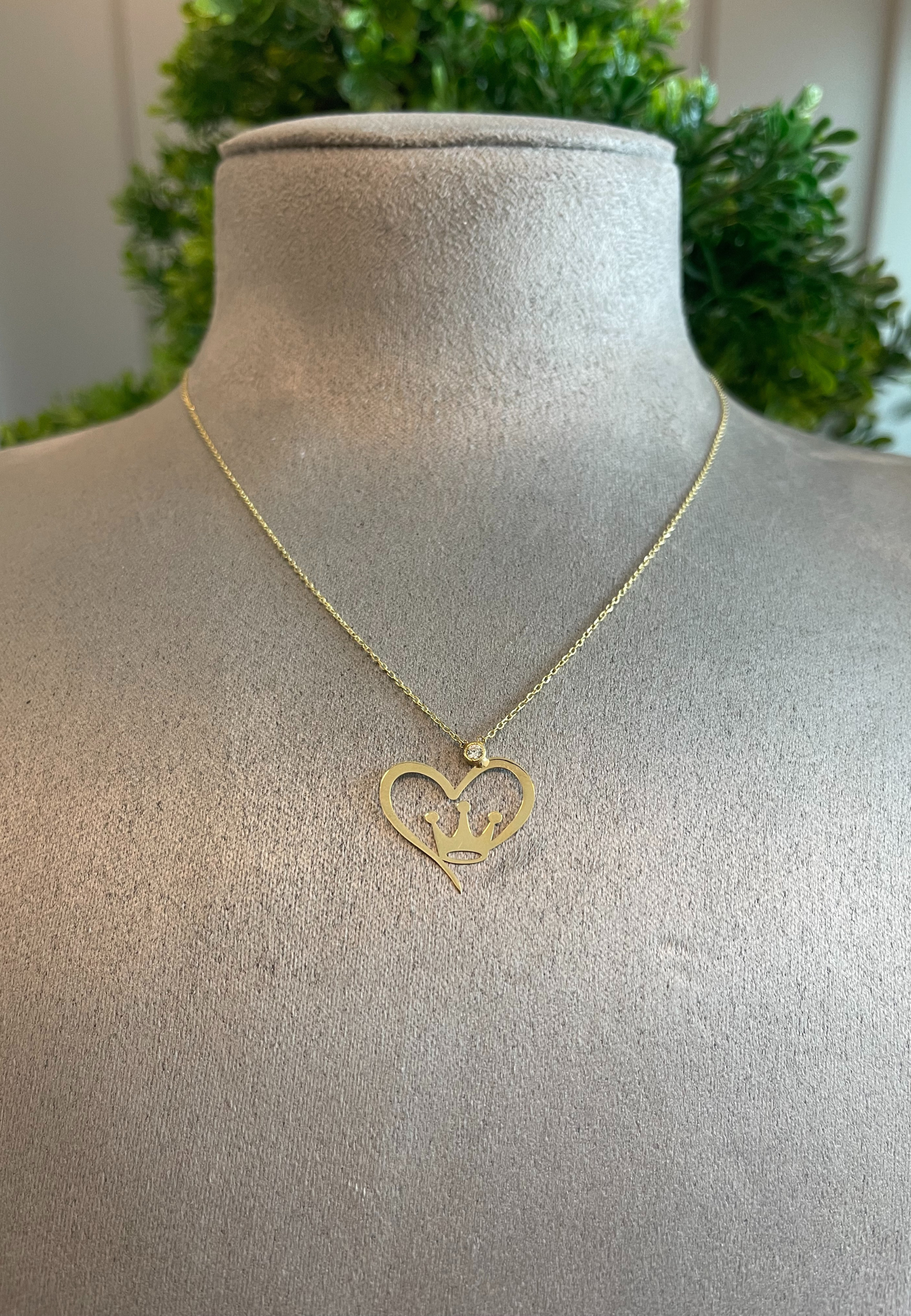 The 18KT Gold King Heart Necklace features a bold heart design crafted in 18KT Gold, symbolizing strength and love. With its regal and sophisticated style, this piece makes a powerful statement accessory.