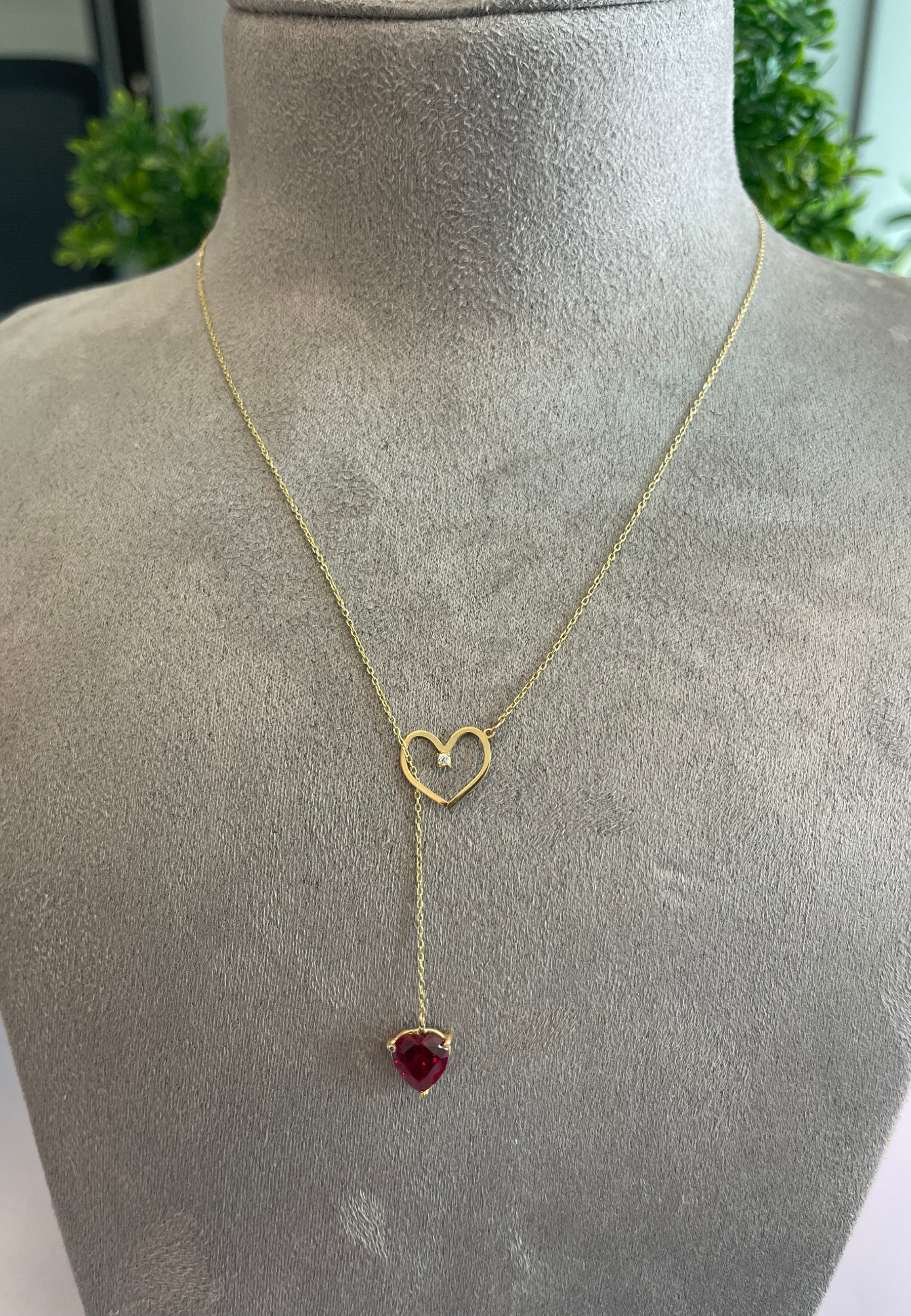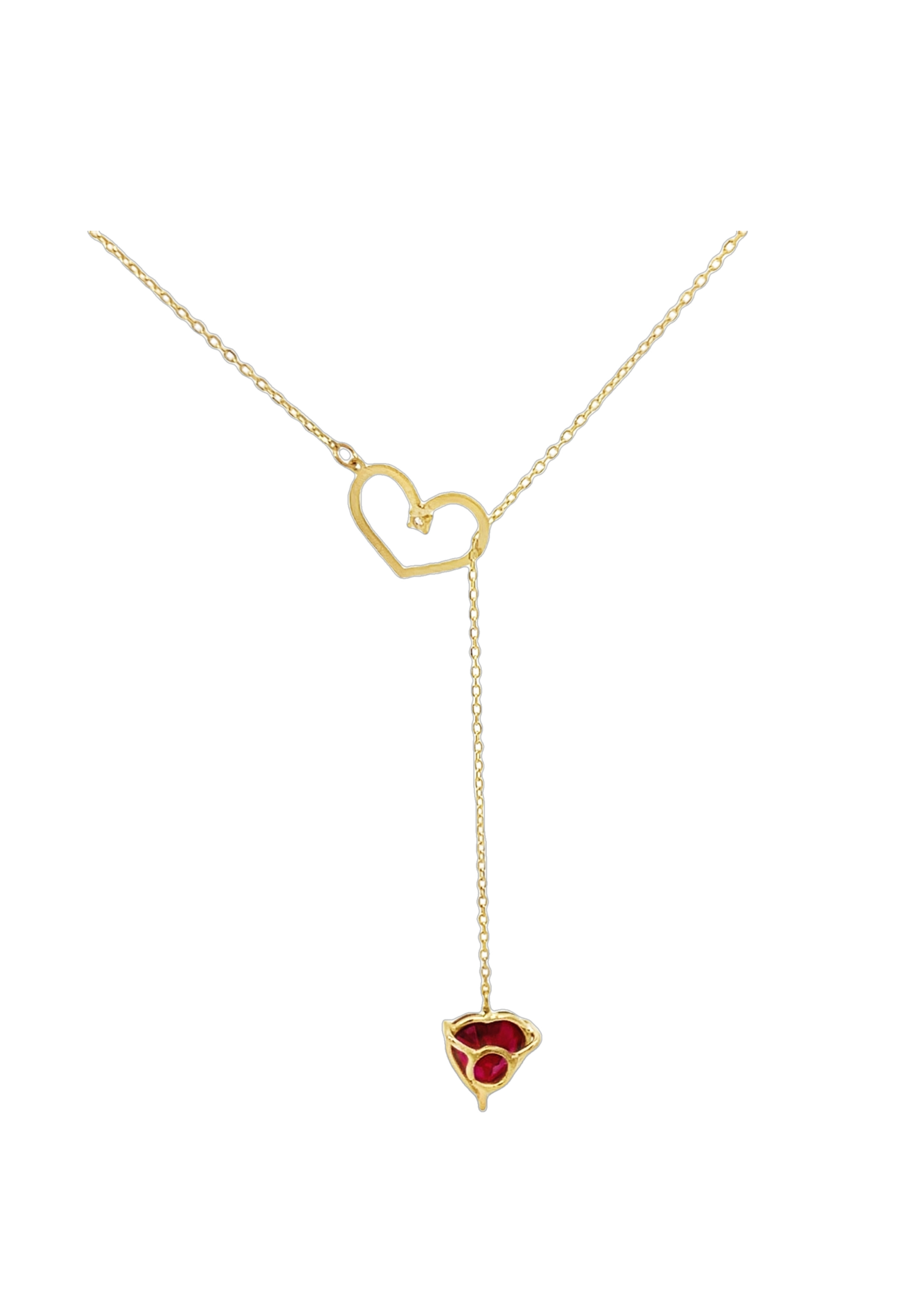 18KT Gold Heart Shaped Ruby Necklace with Zircon