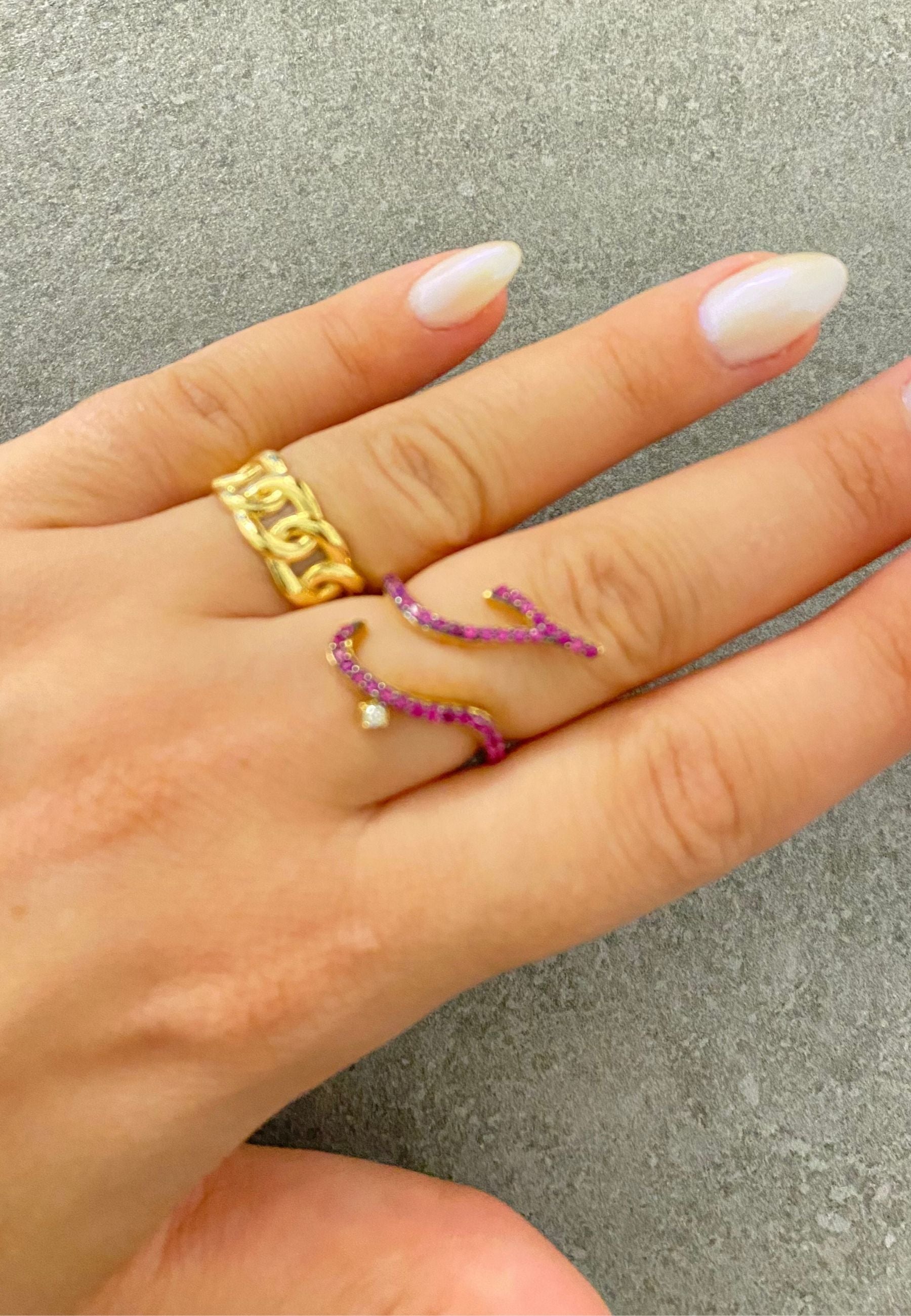 The 18KT Gold Ruby Zircon Love Ring features a stunning ruby centerpiece surrounded by sparkling zircon stones. Crafted from luxurious 18KT Gold, this elegant piece symbolizes love and passion, adding a touch of romance and sophistication to any outfit.