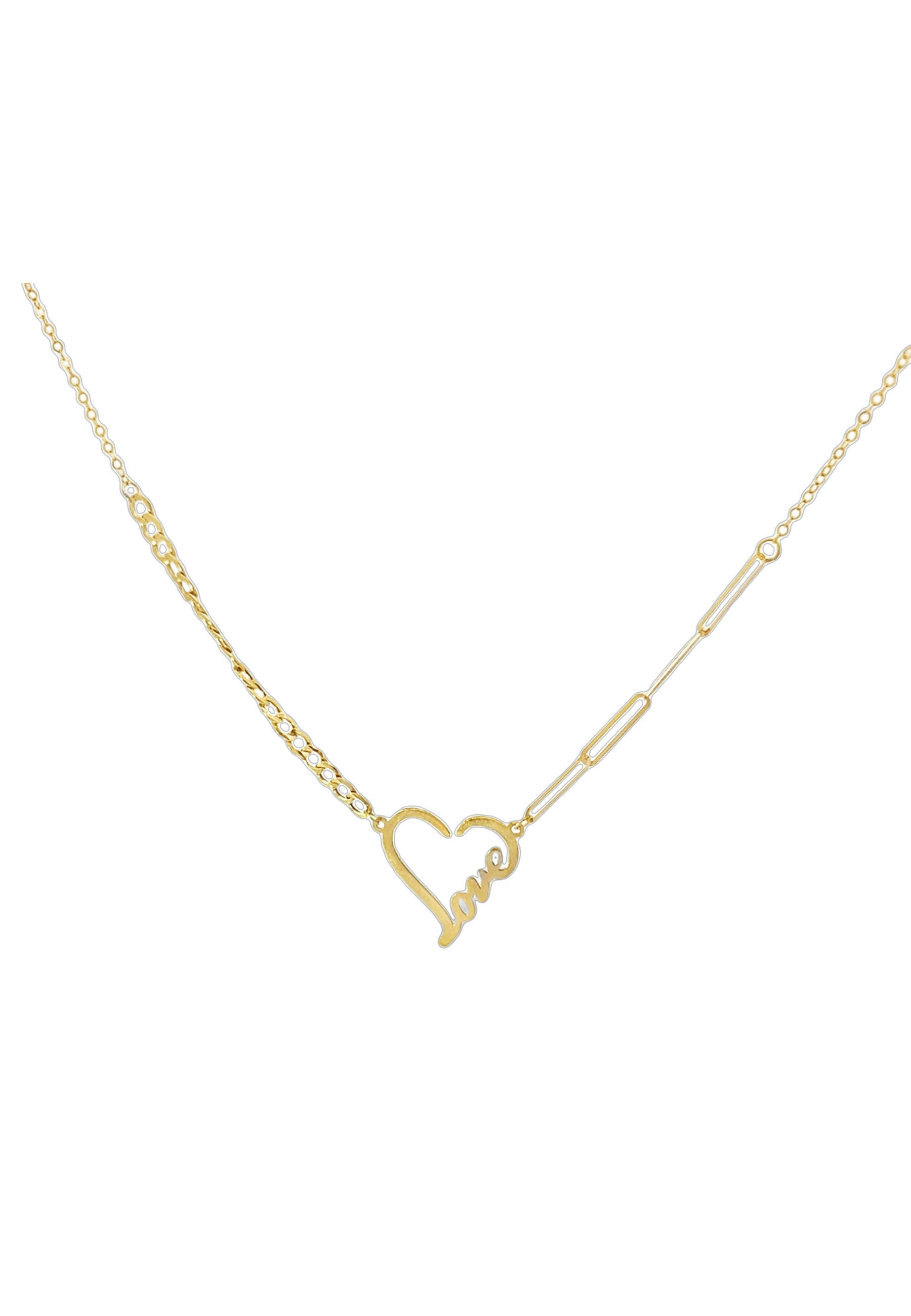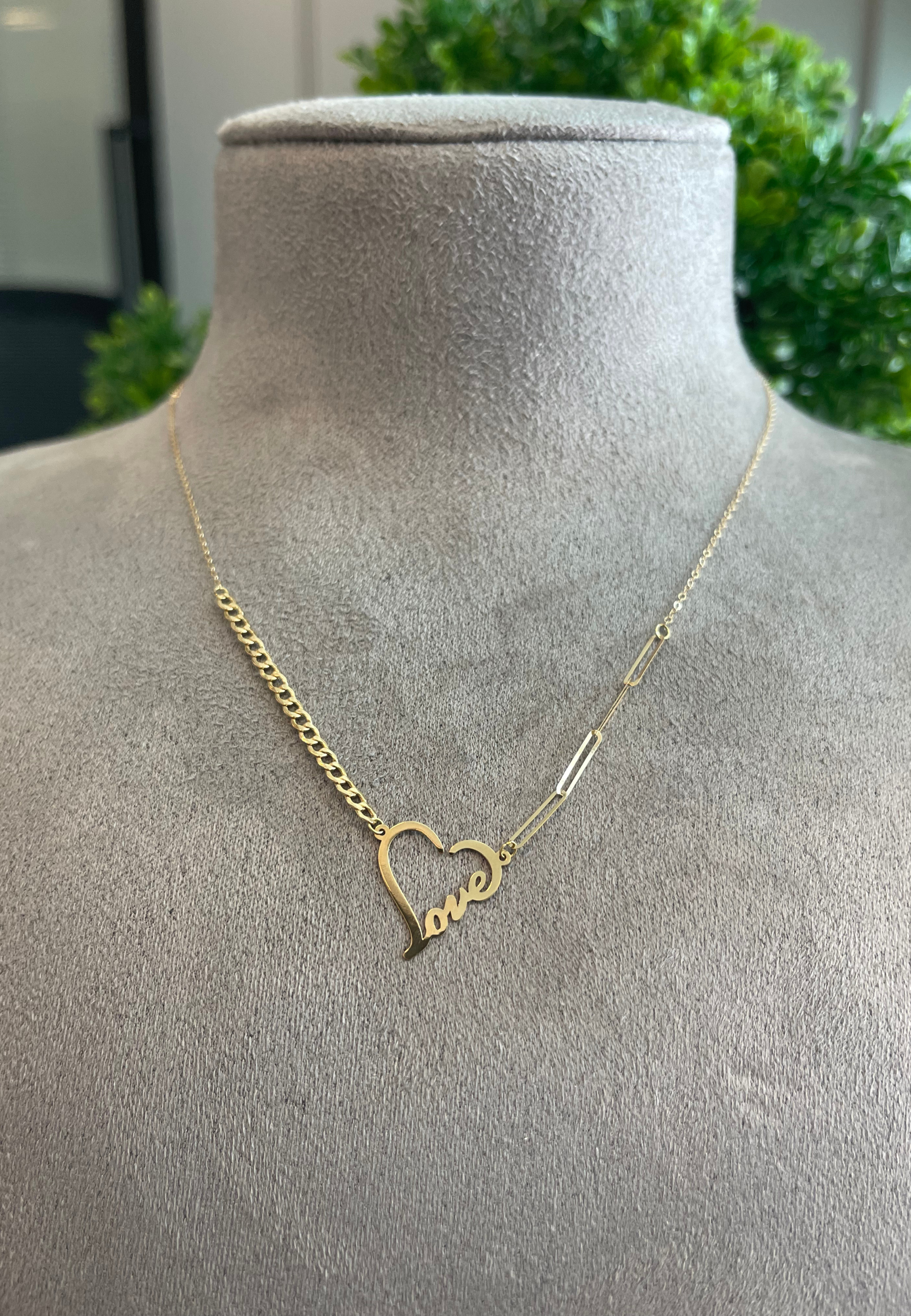 18KT Gold Valentine Necklace with Paperclip and Curb Chain