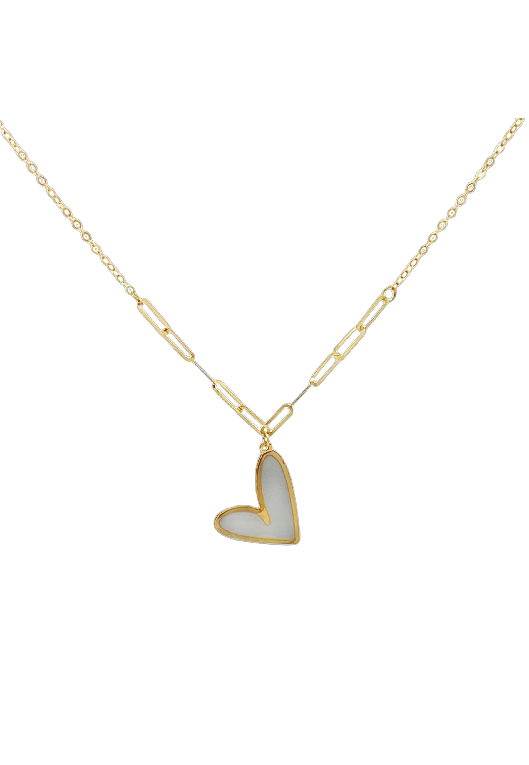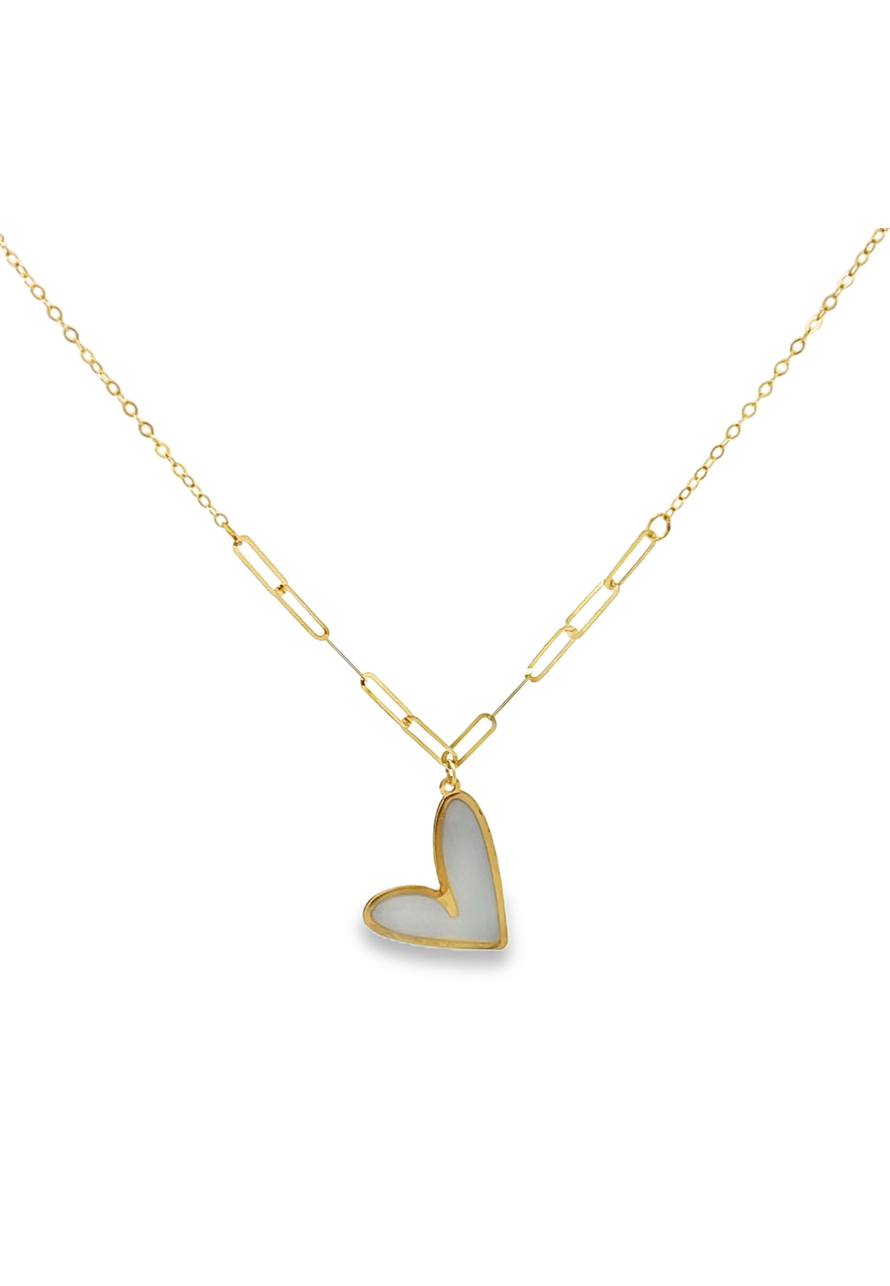 18KT Gold White Enamel Heart Necklace