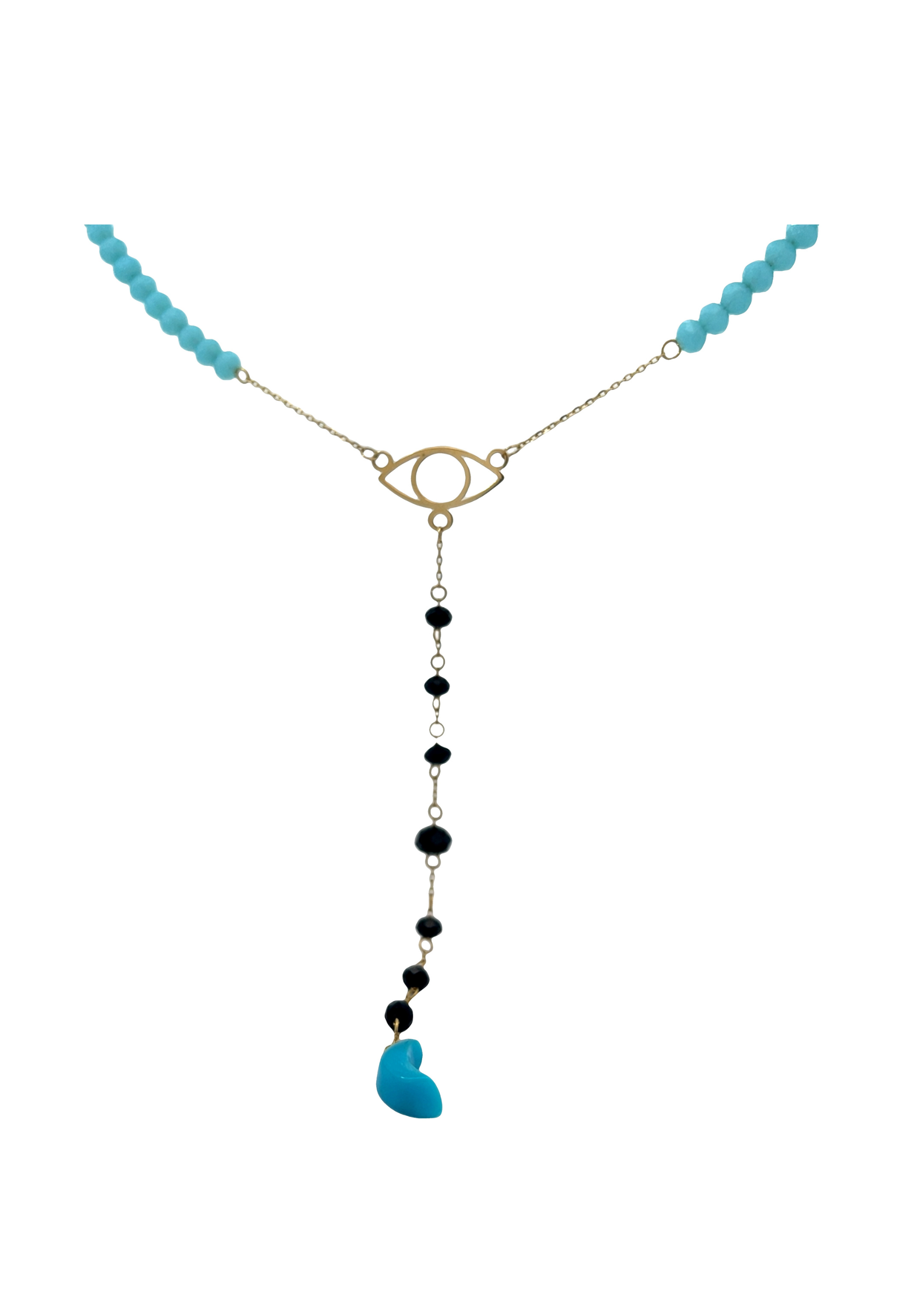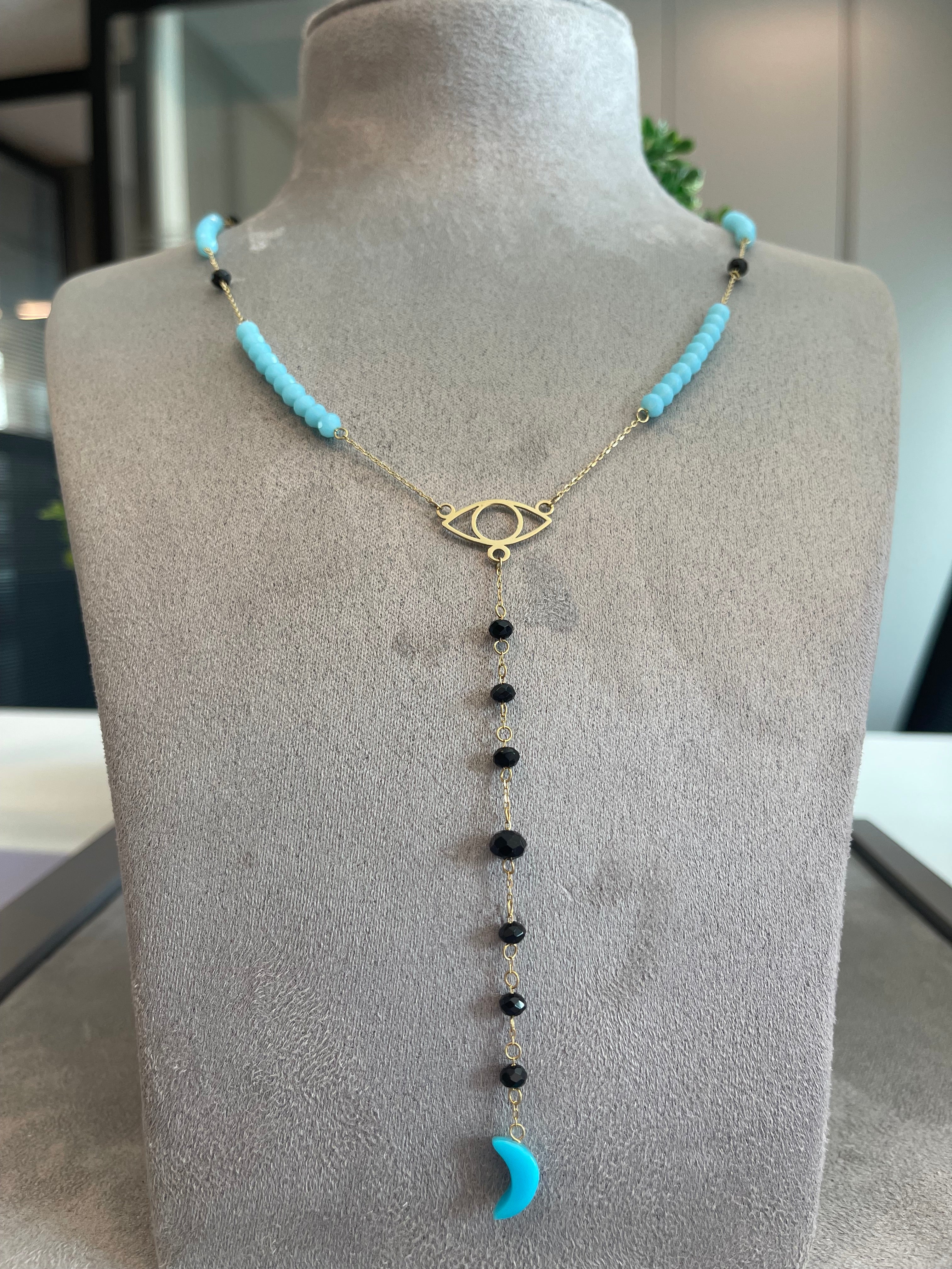 18KT Gold Eye Necklace with Onyx and Fairouz Beads