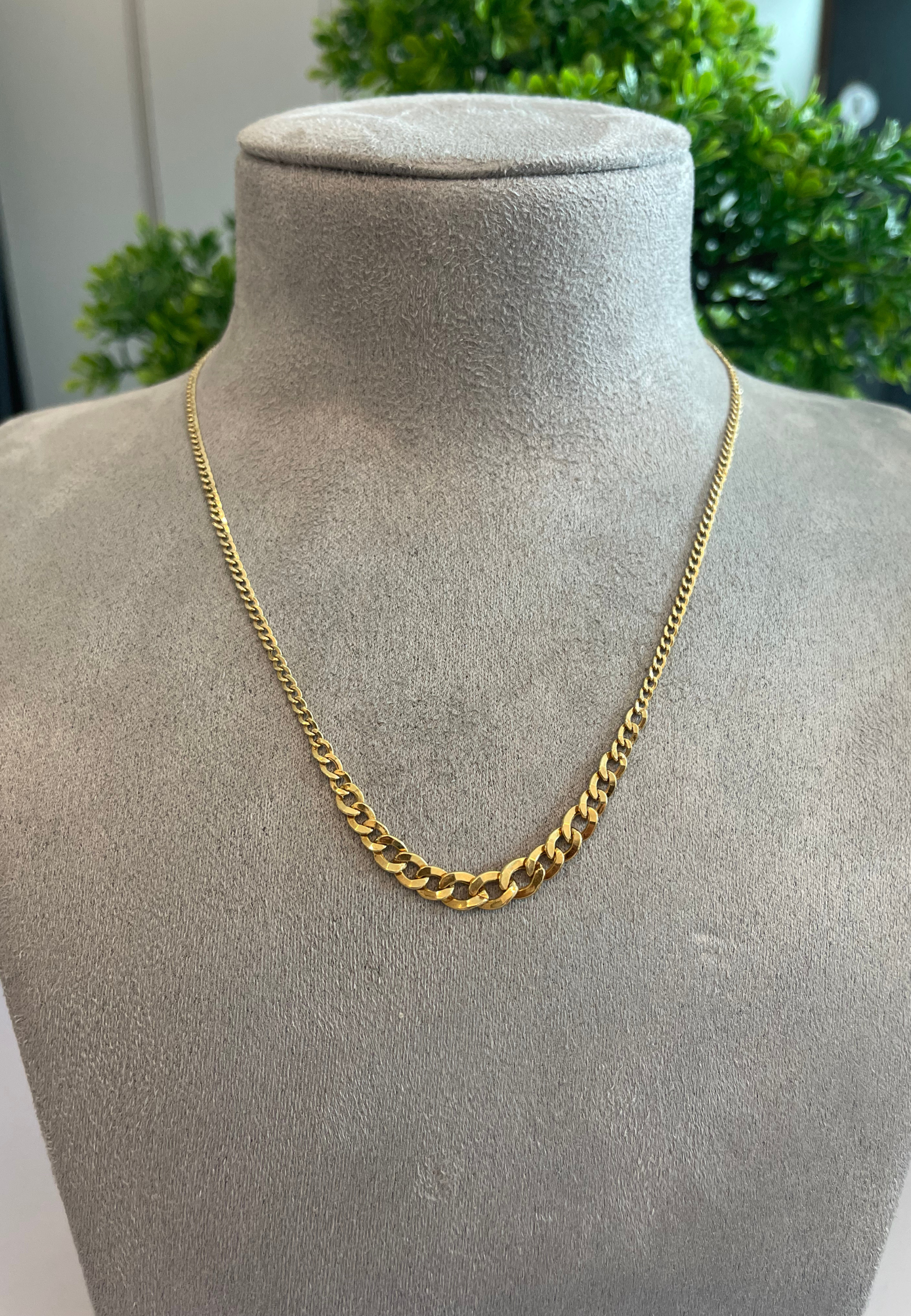 This luxurious necklace boasts the timeless allure of a Cuban link pattern, skillfully crafted from high-quality 18KT gold to deliver both durability and a radiant shine. Embrace the perfect balance of opulence and versatility with this standout piece, ideal for those who appreciate refined and stylish jewelry.