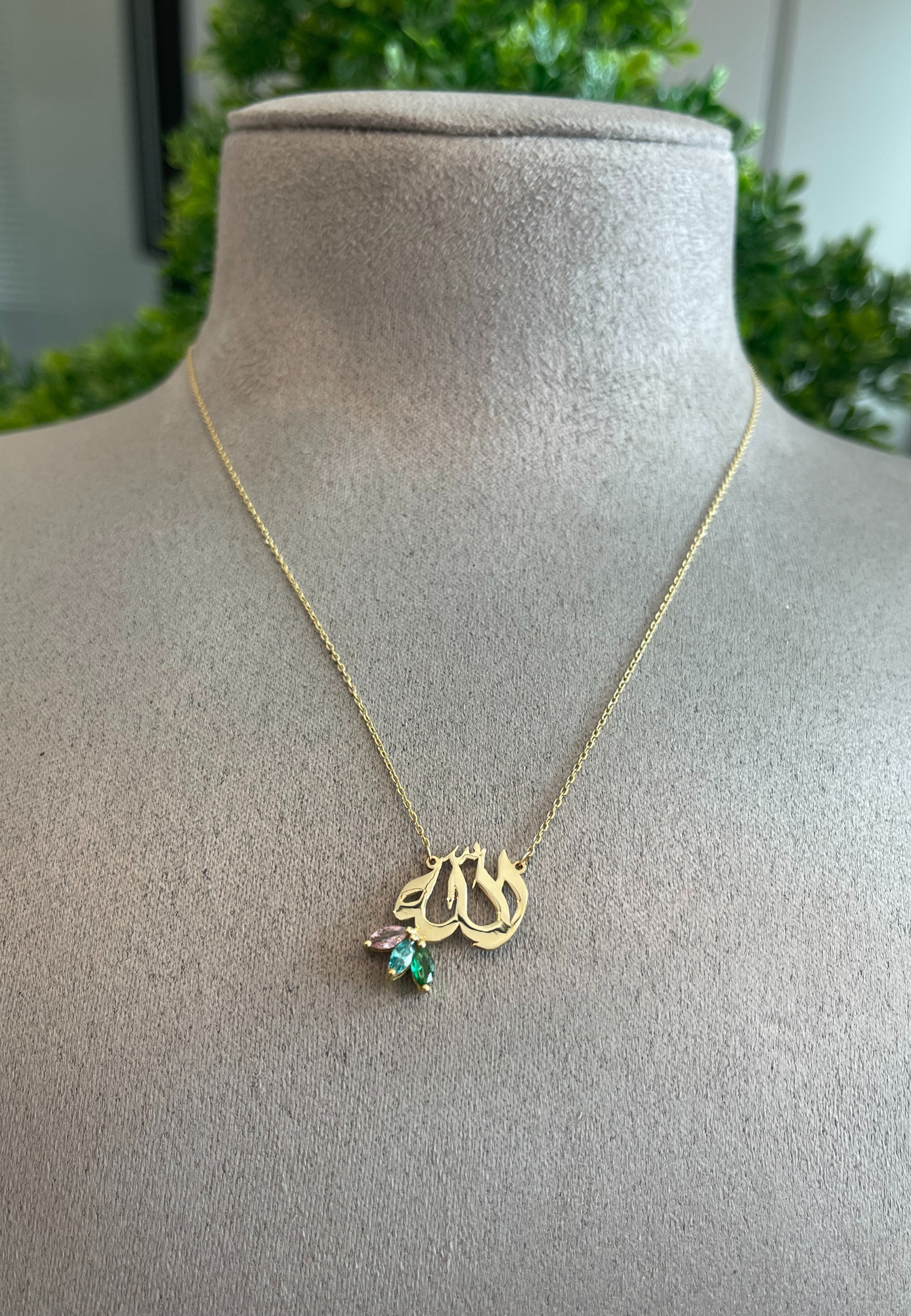 18KT Gold Elegant Allah with Semi-Precious Stones Necklace