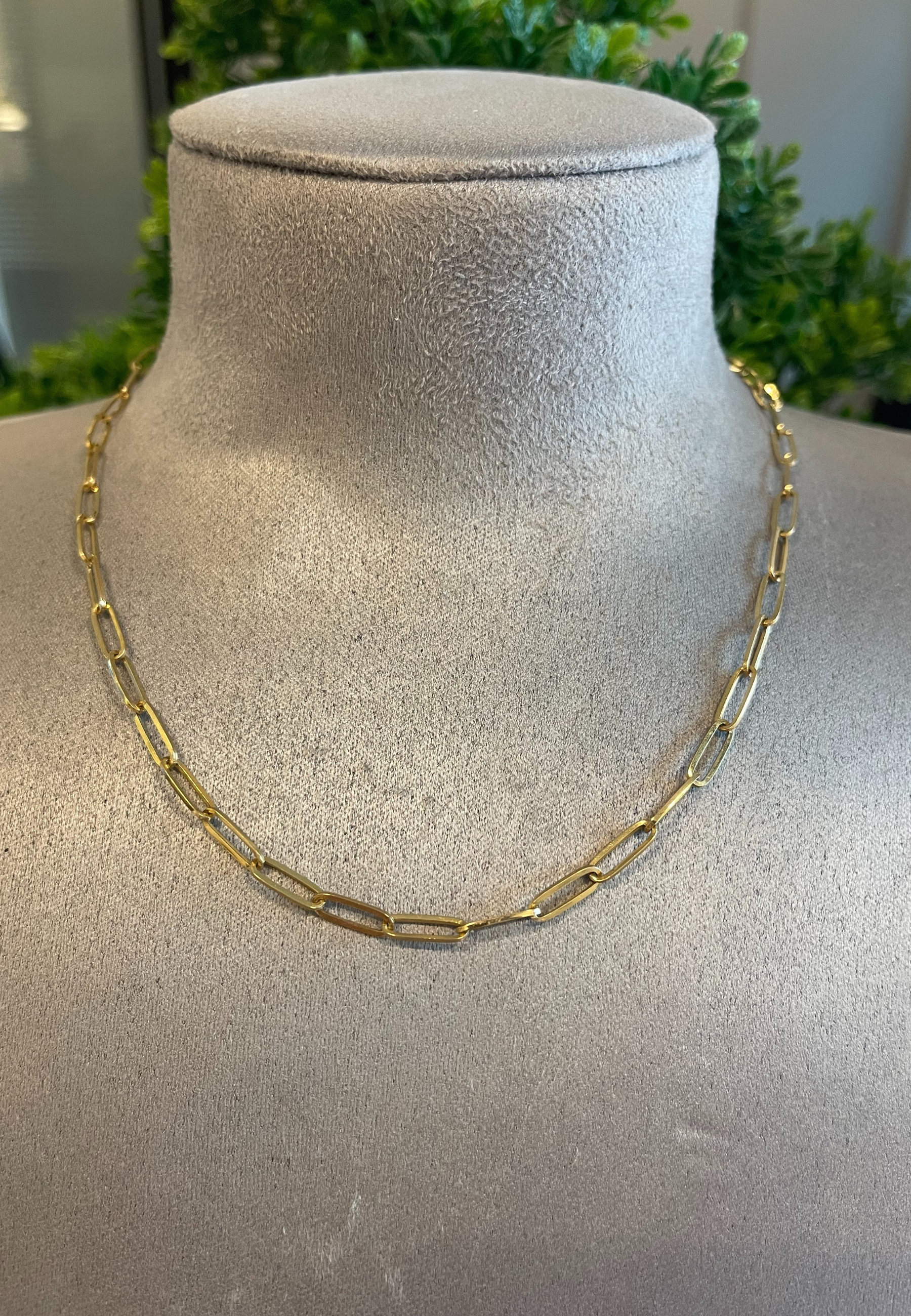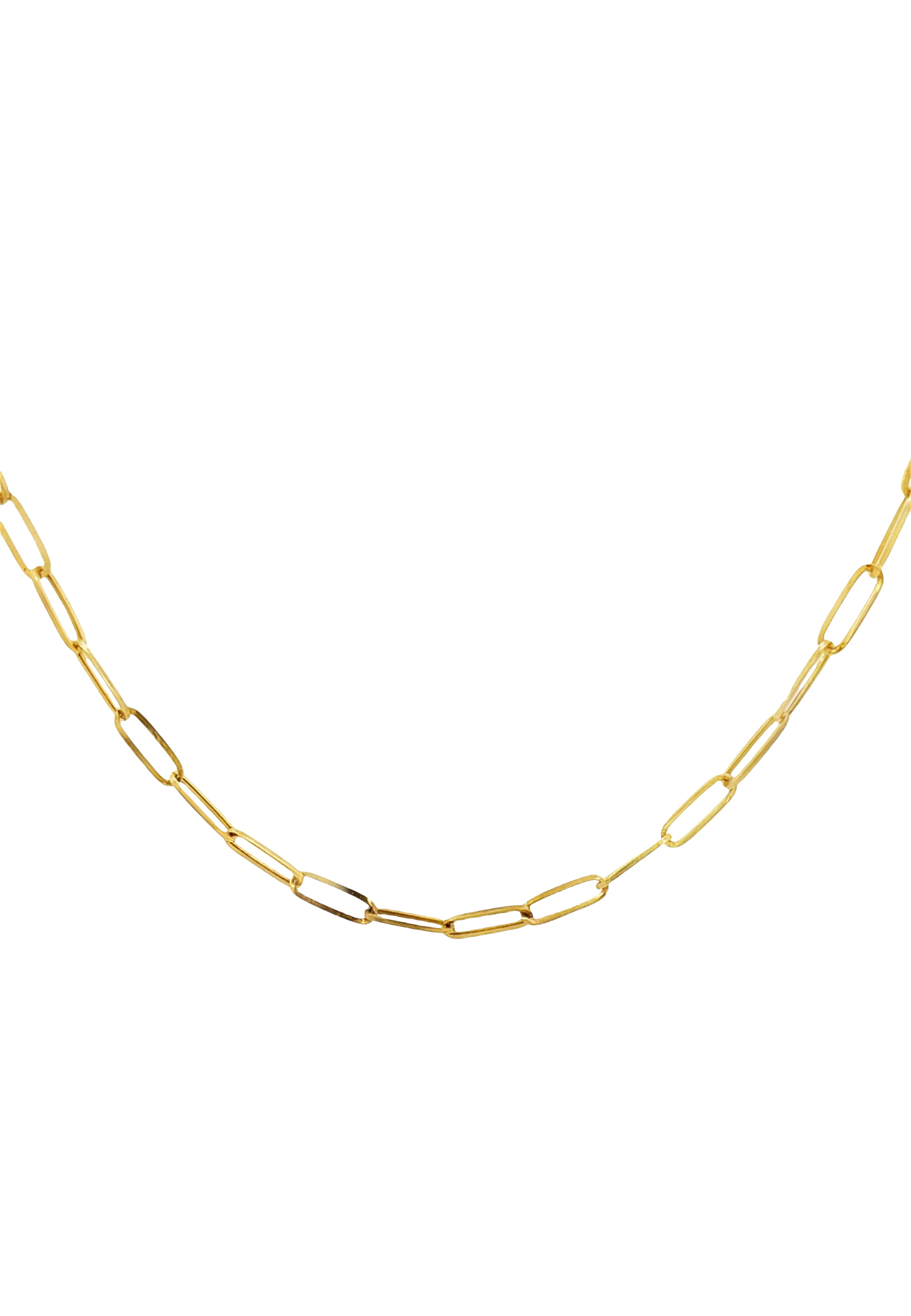 Crafted with precision and sophistication, this 18KT Gold Necklace embodies minimalist charm and timeless style. The radiant gold finish of the paperclip chain adds a touch of luxury, making it a versatile accessory for any occasion.